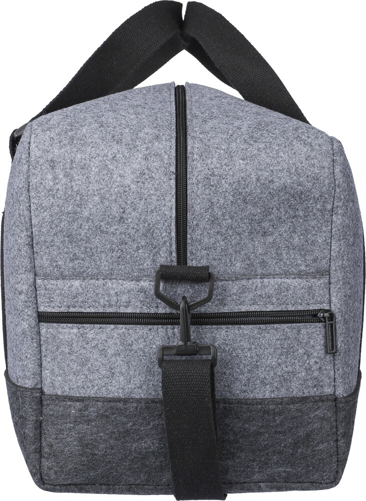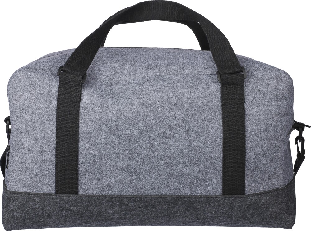 Sportovní taška z rPET plsti s plátěnými rukojeťmi a nastavitelným ramenním popruhem. Má velkou přihrádku na zip a malou přihrádku na zip na přední straně. Včetně štítku rPET. Objem: 30 l. Nosnost: 10 kg. Rozměry: 51 x 46 x 2,5 cm