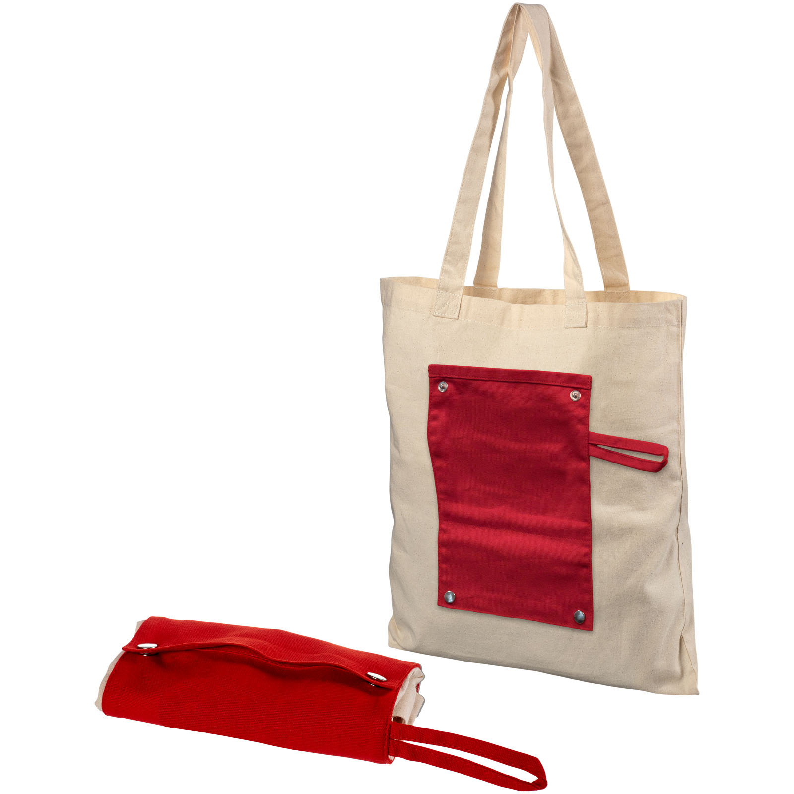 Srolovatelná odnoska Snap z bavlny 180 g/m² na knoflíky. Srolovatelná odnoska z bavlny 180 g/m² s otevřeným hlavním prostorem a praktickou nášivkou 220 g/m² opatřenou knoflíky pro srolování. Tuto tašku lze snadno srolovat tak, aby se vešla i do malého prostoru. Nosná výška popruhů 27 cm. Bavlna.