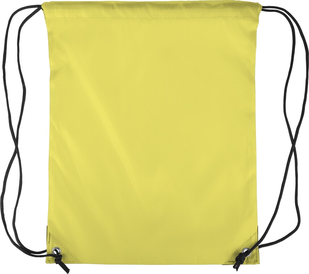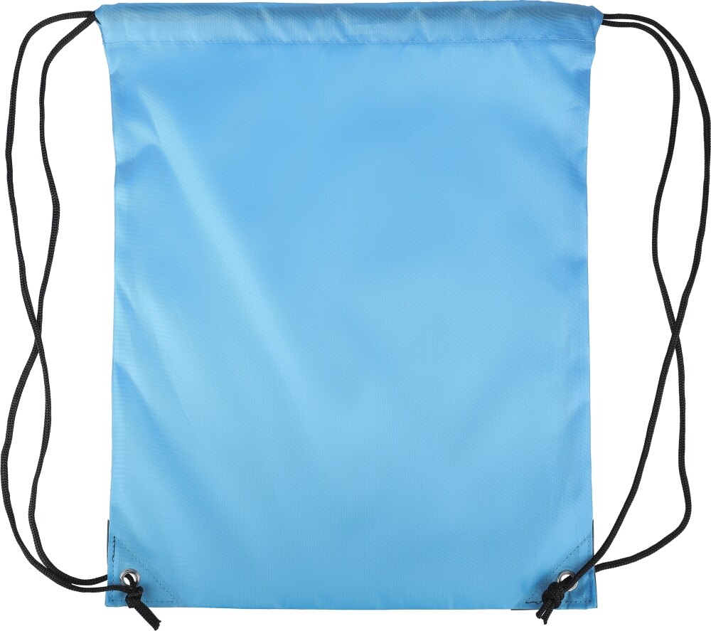 Stahovací batoh z polyesteru 210D se dvěma černými PU rohy na přední straně a vnitřním prošitím. Má černou nylonovou šňůrku na každé straně, zapínání na stahovací šňůrku a jednu vnitřní přihrádku. Objem: 5 l. Nosnost: 7 kg. Rozměry: 34 x 0,1 x 42 cm