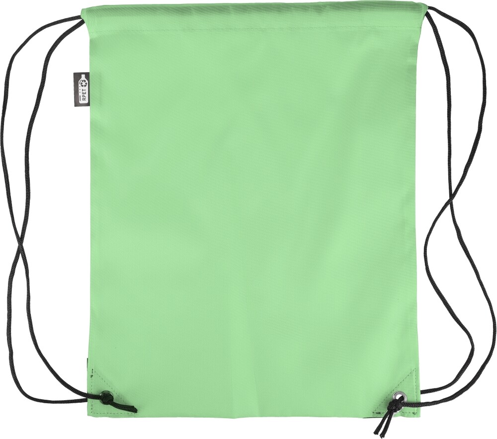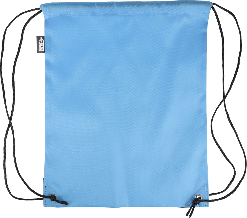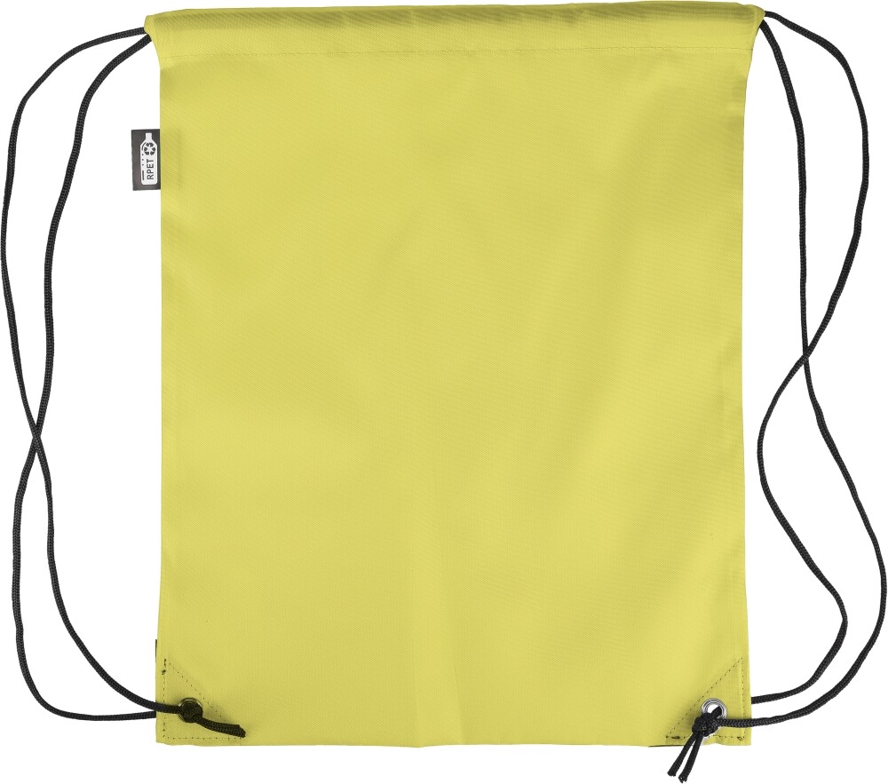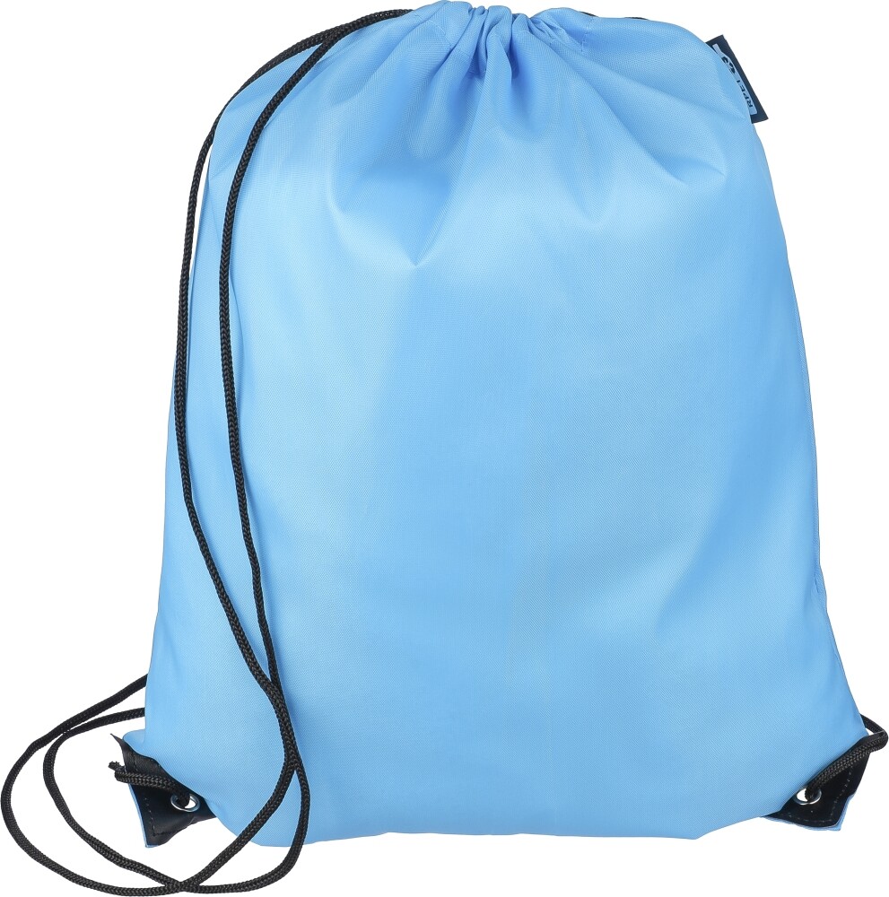 Stahovací batoh z polyesteru 210D se dvěma černými PU rohy na přední straně a vnitřním prošitím. Má černou nylonovou šňůrku na každé straně, zapínání na stahovací šňůrku a jednu vnitřní přihrádku. Objem: 5 l. Nosnost: 7 kg. Rozměry: 34 x 0,1 x 42 cm
