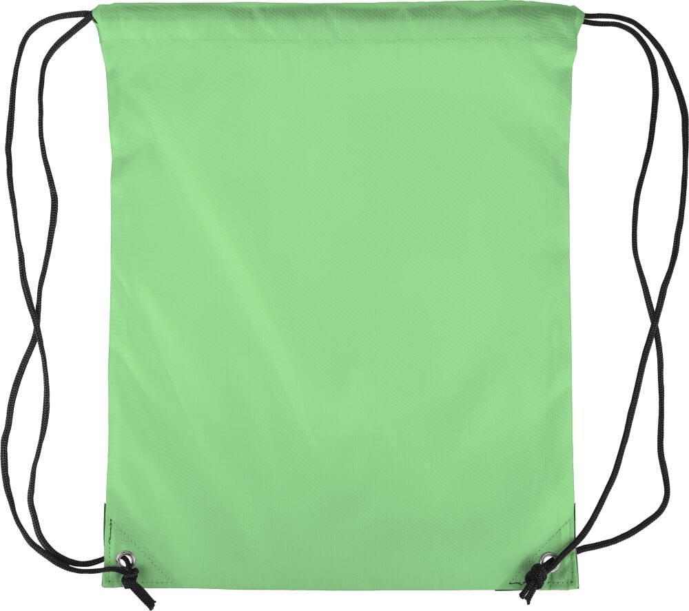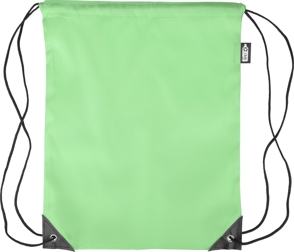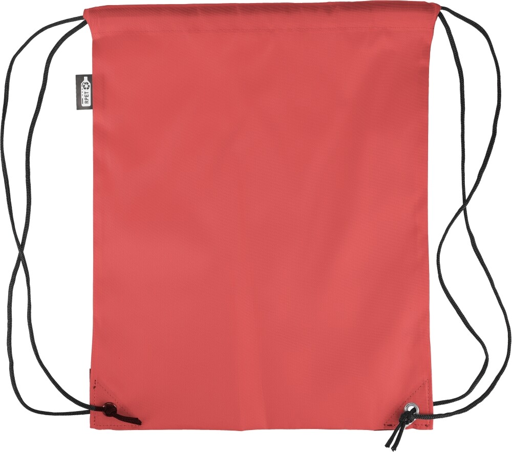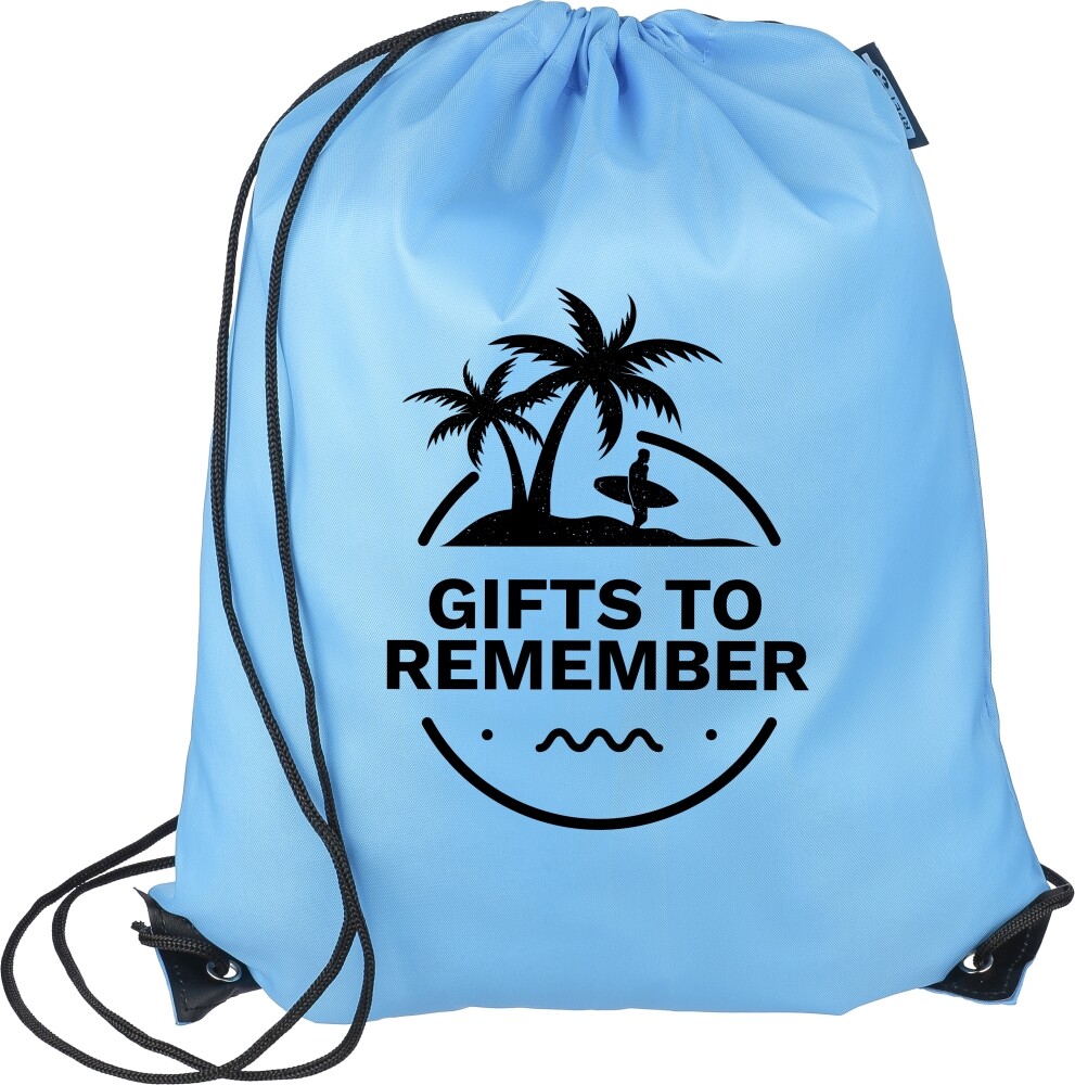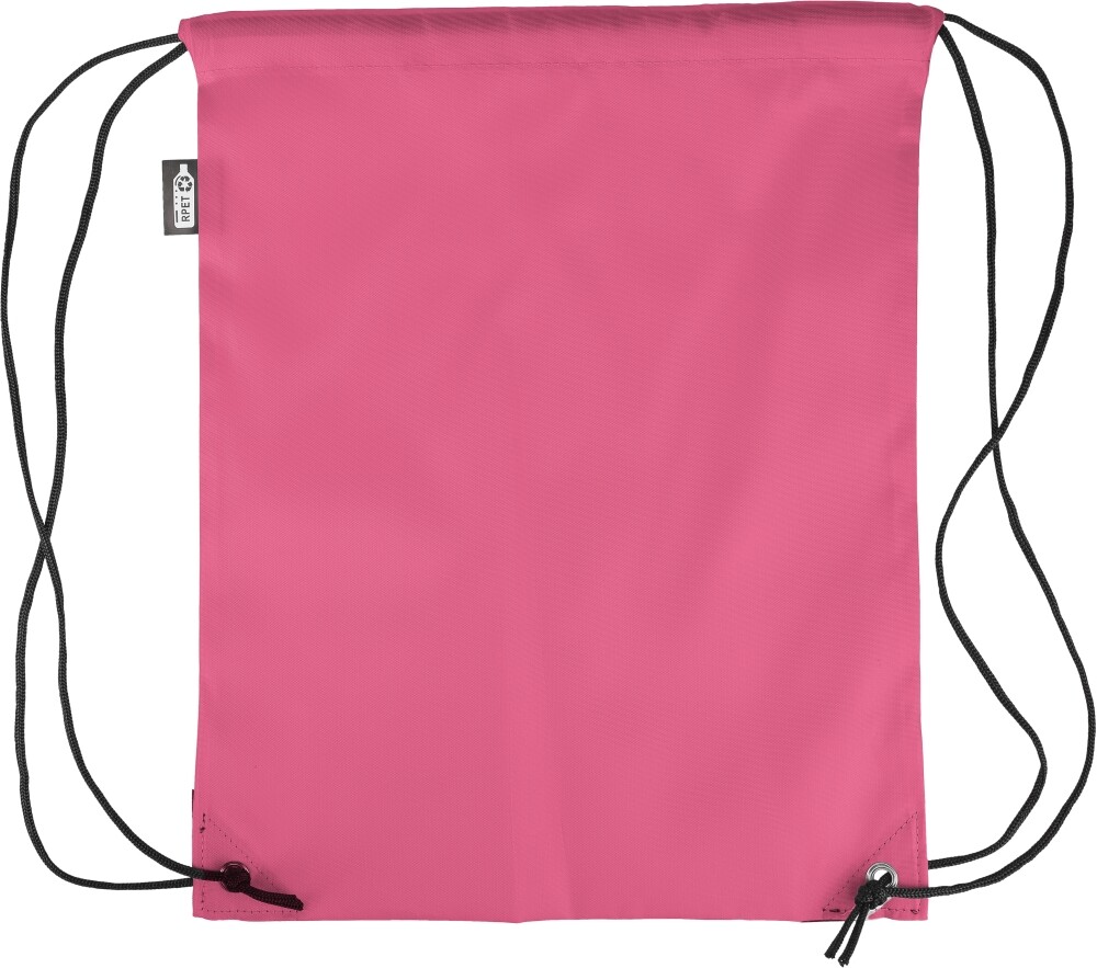 Stahovací batoh z polyesteru 210D se dvěma černými PU rohy na přední straně a vnitřním prošitím. Má černou nylonovou šňůrku na každé straně, zapínání na stahovací šňůrku a jednu vnitřní přihrádku. Objem: 5 l. Nosnost: 7 kg. Rozměry: 34 x 0,1 x 42 cm