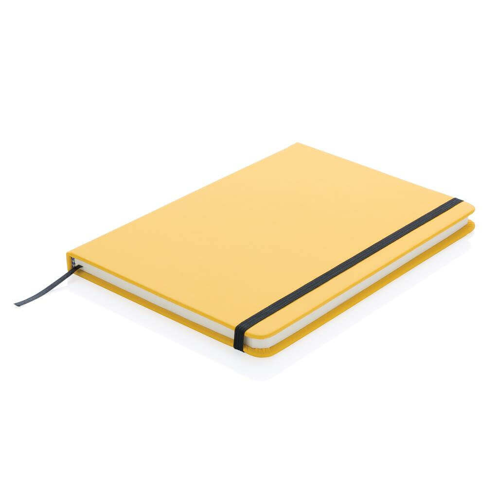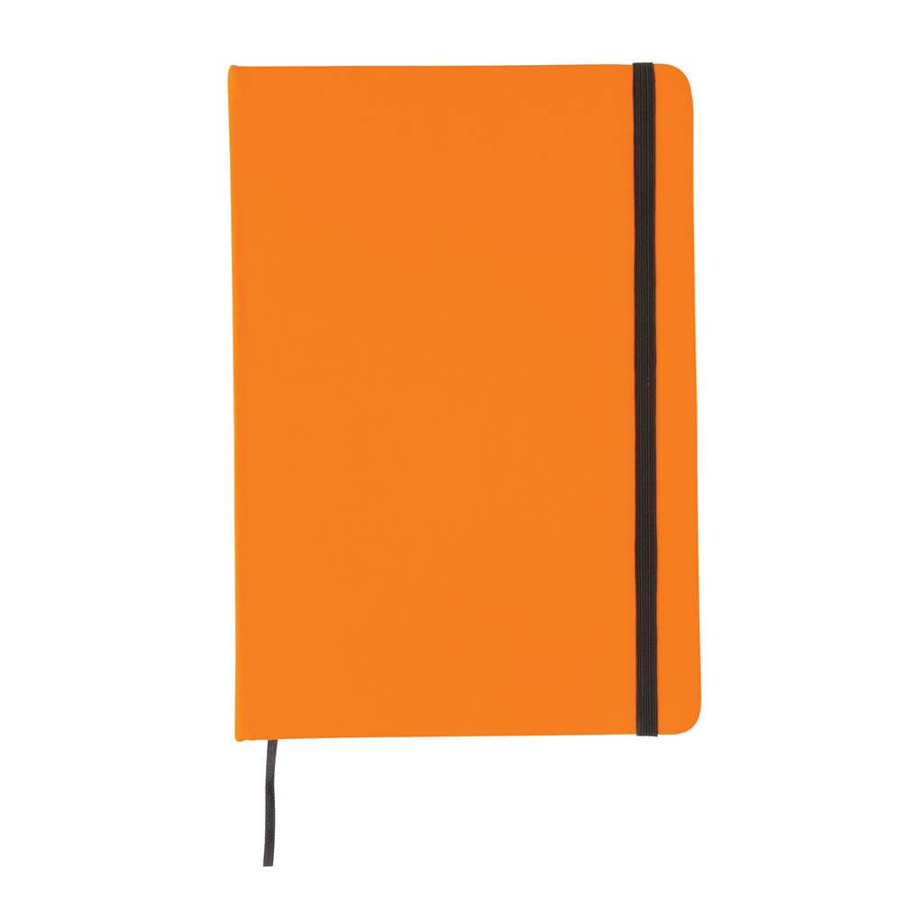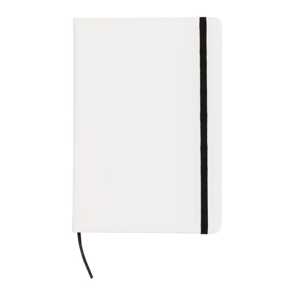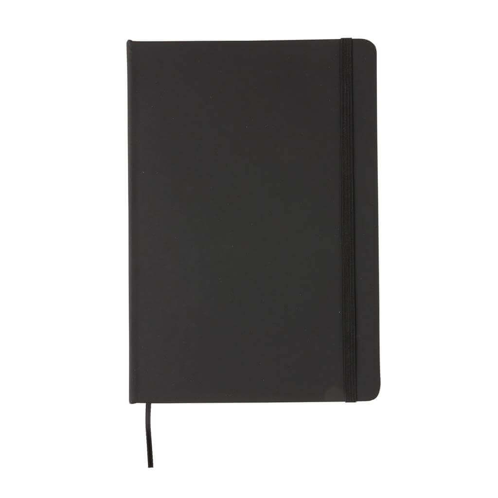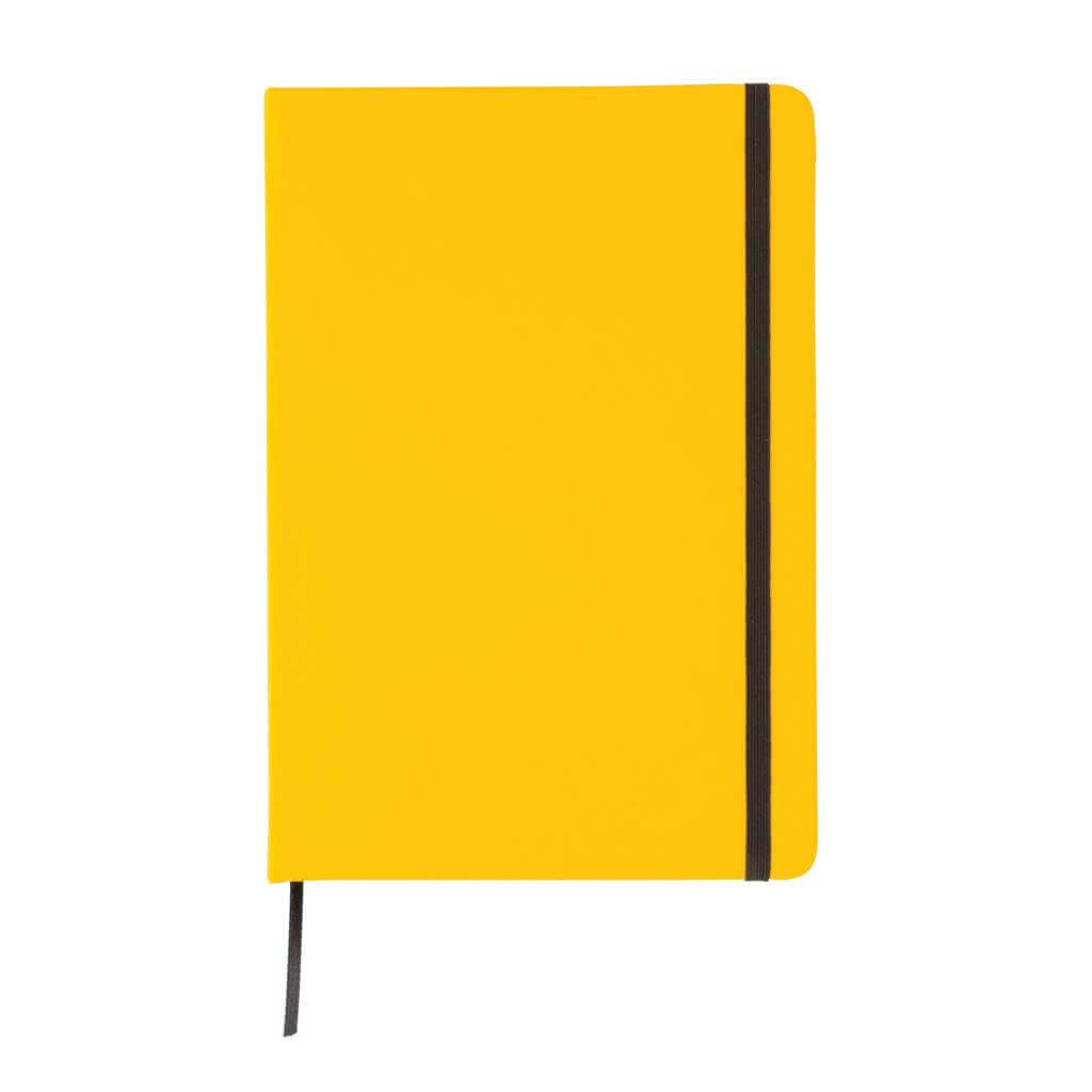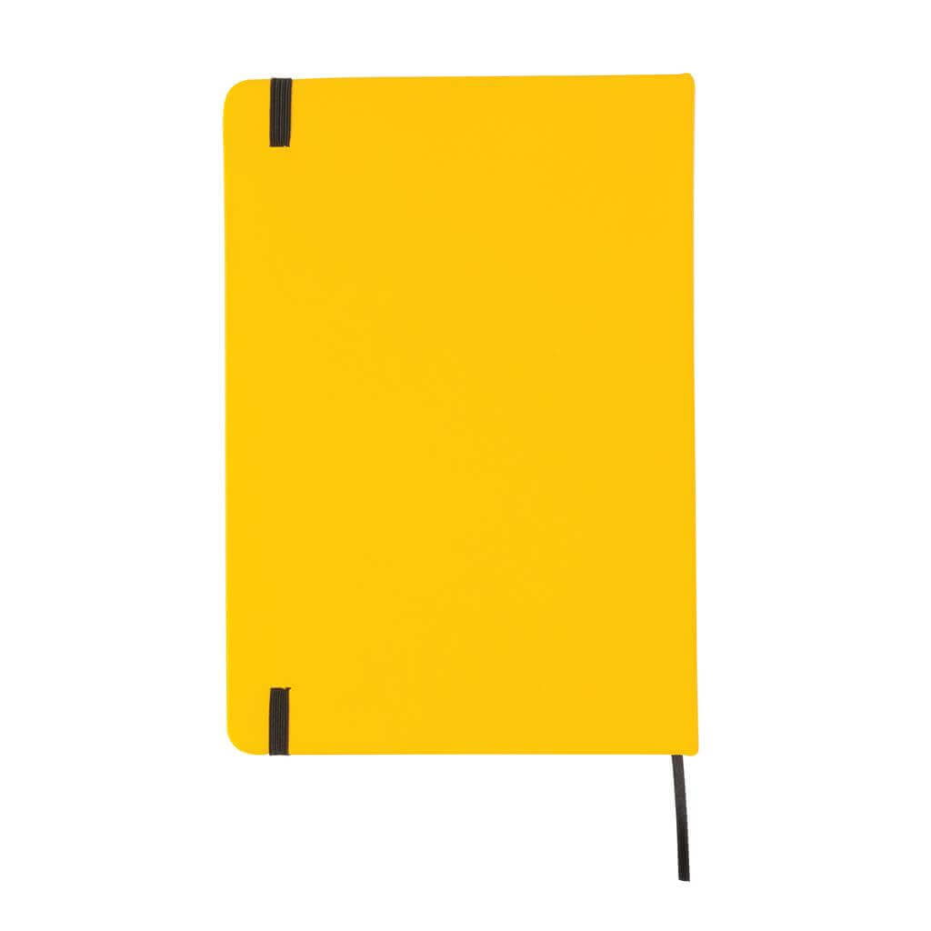 Klasický linkovaný poznámkový blok A5 v pevných deskách z PU s elastickou gumičkou a záložkou z černé stužky. Se 144 stranami krémového papíru s gramáží 70 g/m². PMS color 1: Black PMS color 1: White PMS color 1: 306 PMS color 1: 136