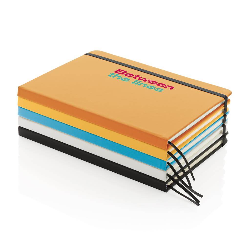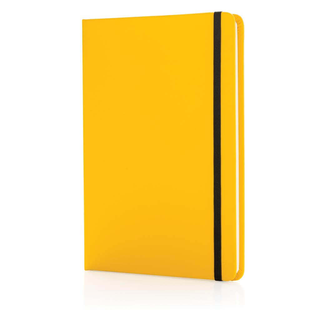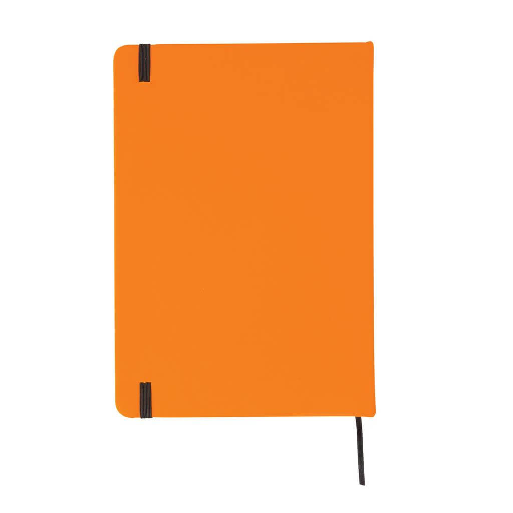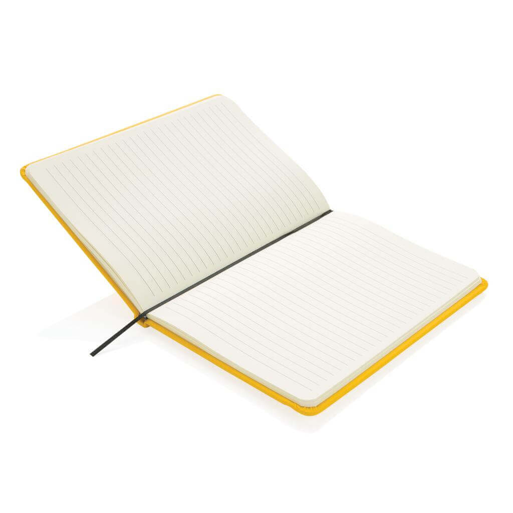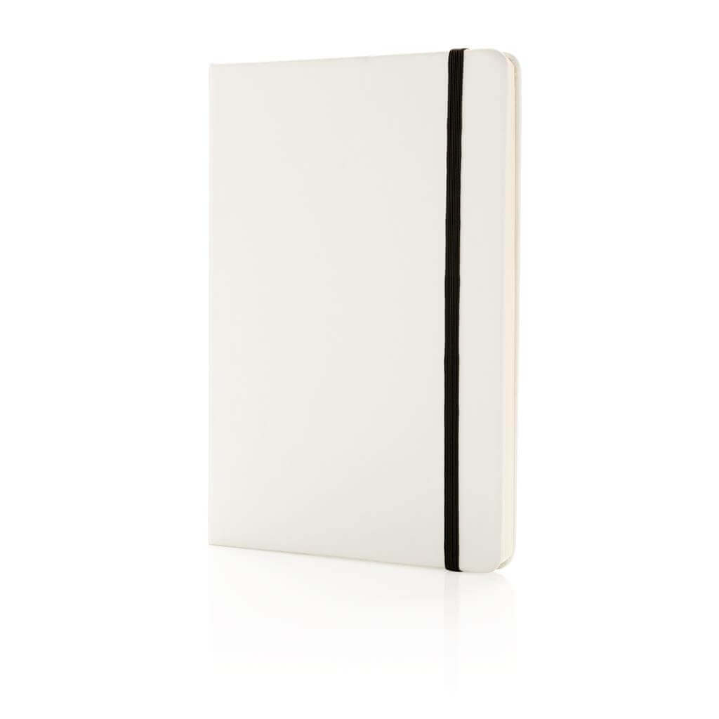 Klasický linkovaný poznámkový blok A5 v pevných deskách z PU s elastickou gumičkou a záložkou z černé stužky. Se 144 stranami krémového papíru s gramáží 70 g/m². PMS color 1: Black PMS color 1: White PMS color 1: 306 PMS color 1: 136