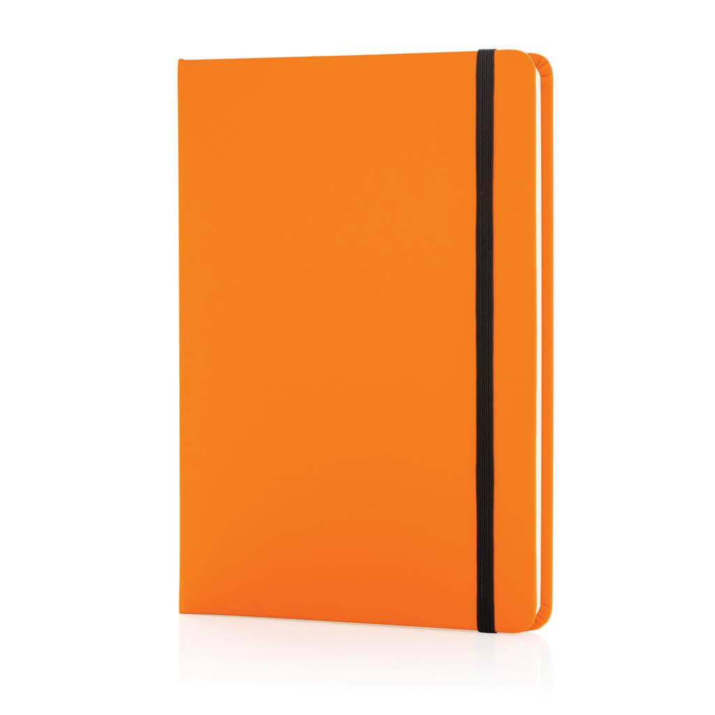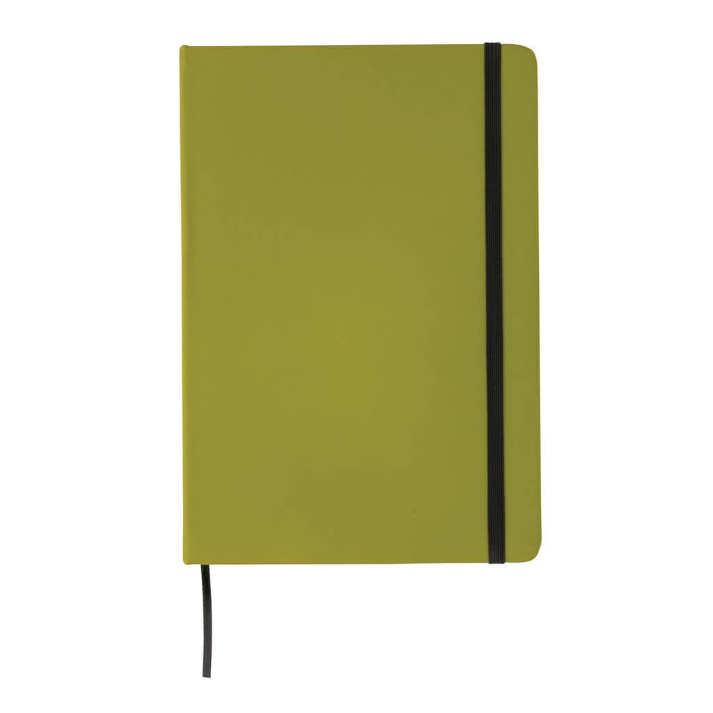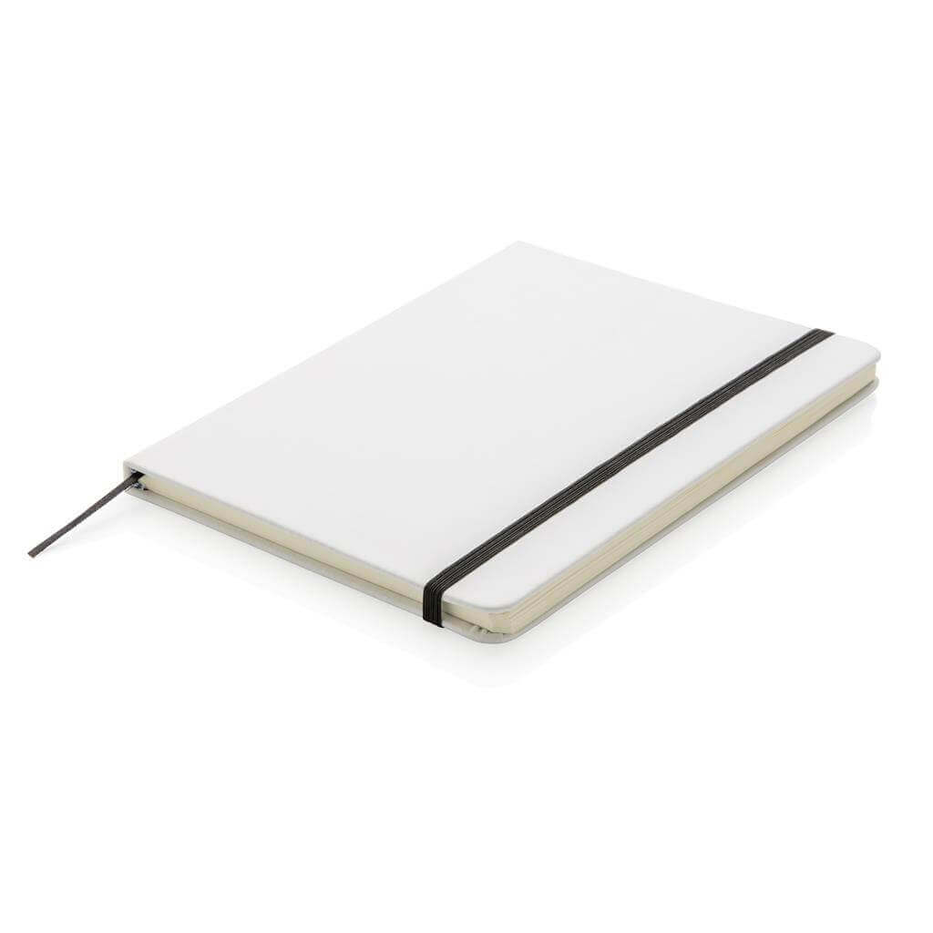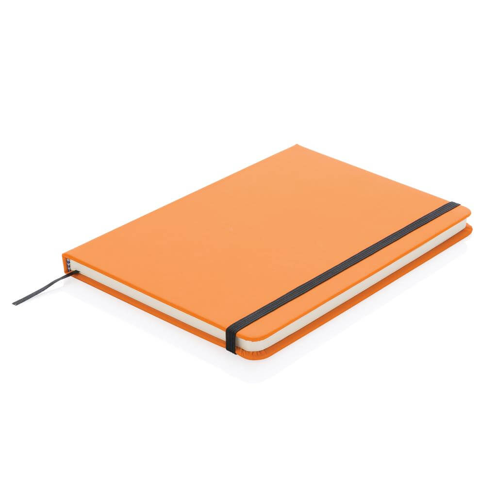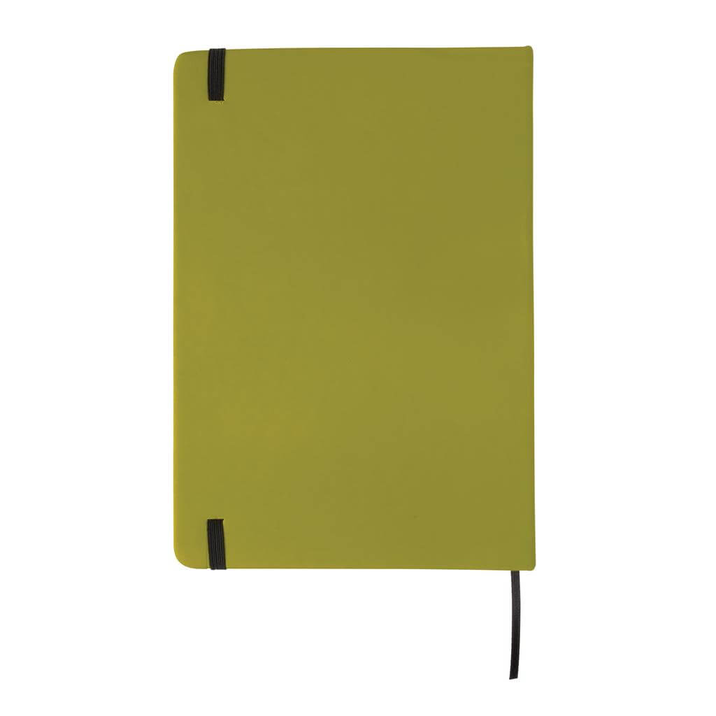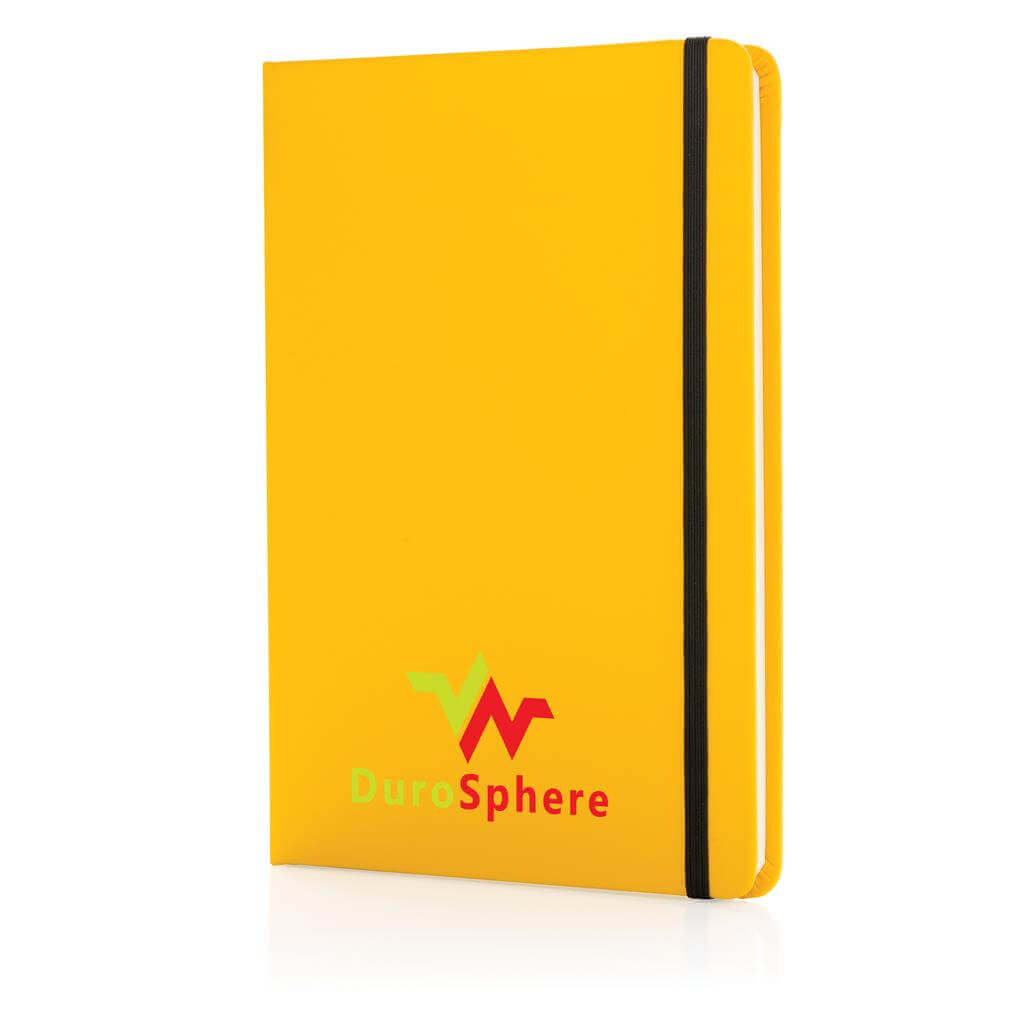 Klasický linkovaný poznámkový blok A5 v pevných deskách z PU s elastickou gumičkou a záložkou z černé stužky. Se 144 stranami krémového papíru s gramáží 70 g/m². PMS color 1: Black PMS color 1: White PMS color 1: 306 PMS color 1: 136