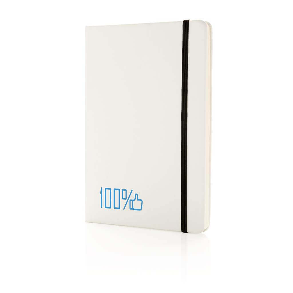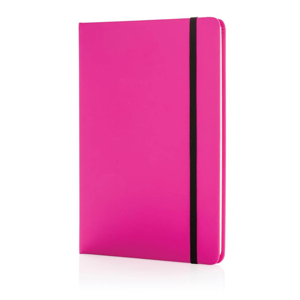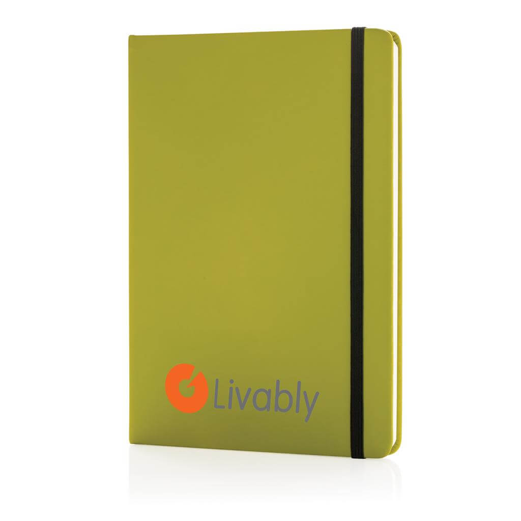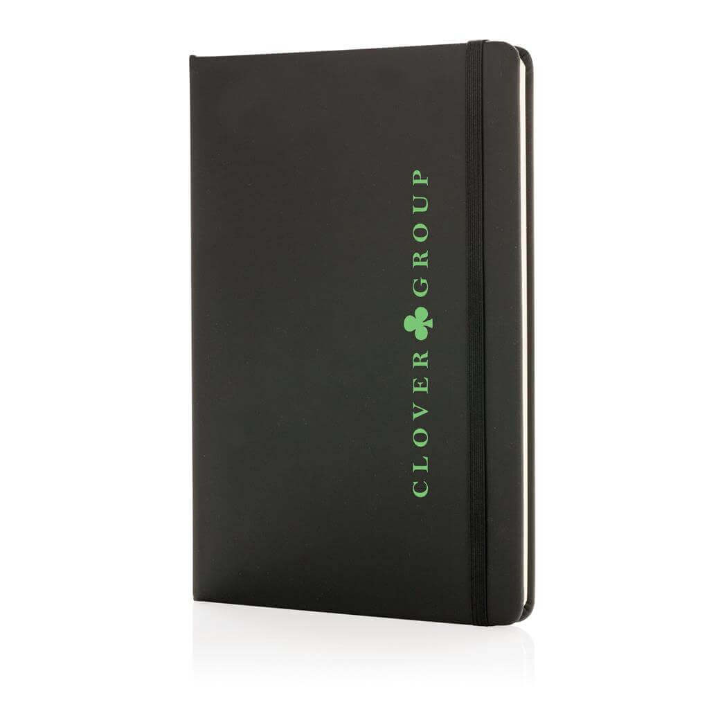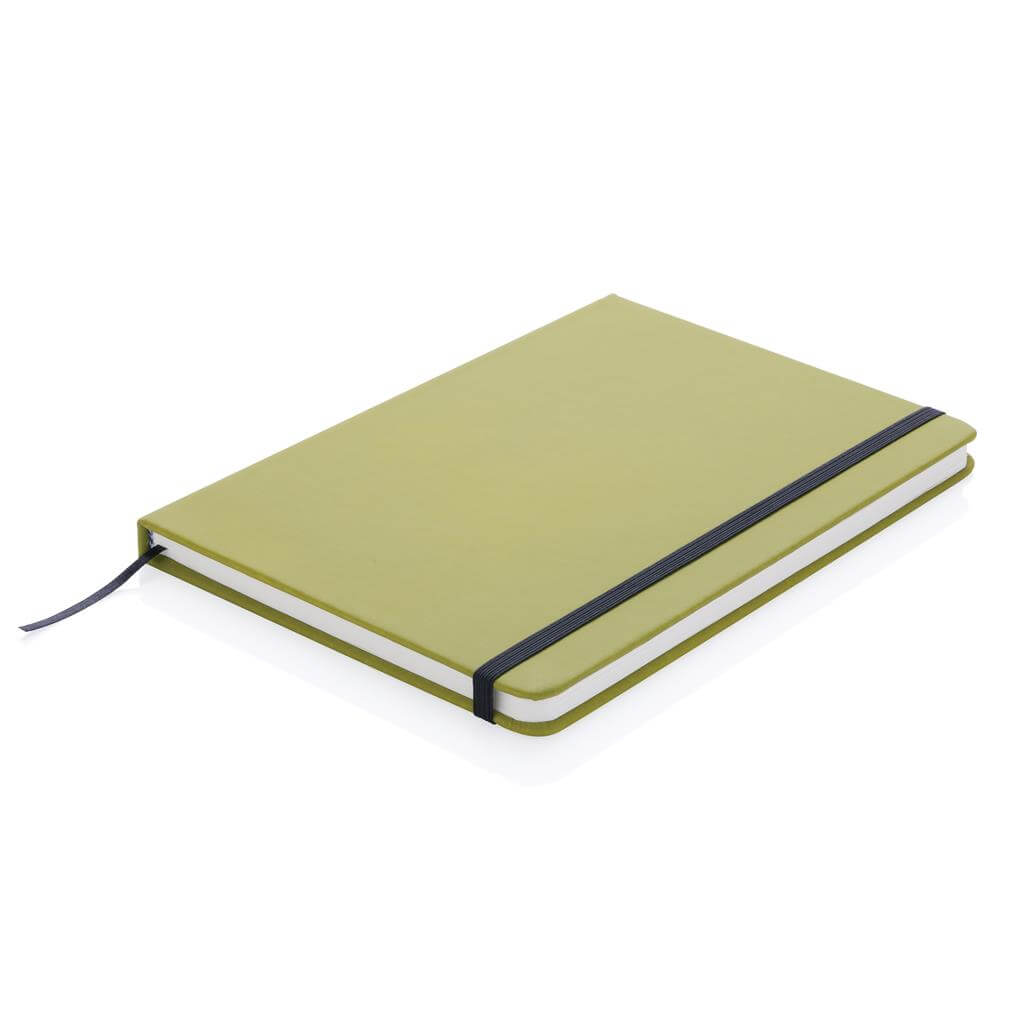 Klasický linkovaný poznámkový blok A5 v pevných deskách z PU s elastickou gumičkou a záložkou z černé stužky. Se 144 stranami krémového papíru s gramáží 70 g/m². PMS color 1: Black PMS color 1: White PMS color 1: 306 PMS color 1: 136