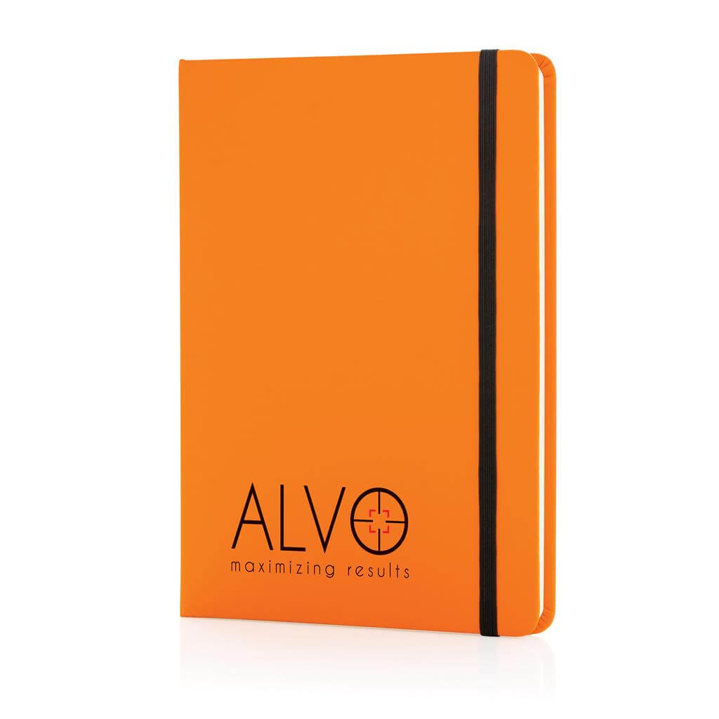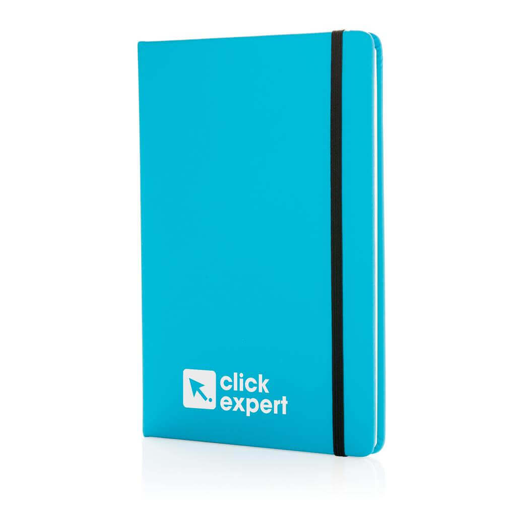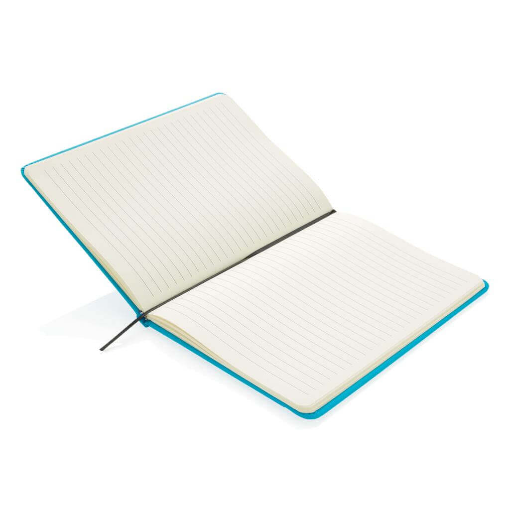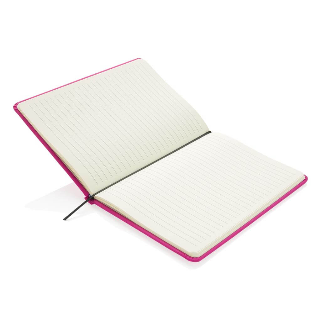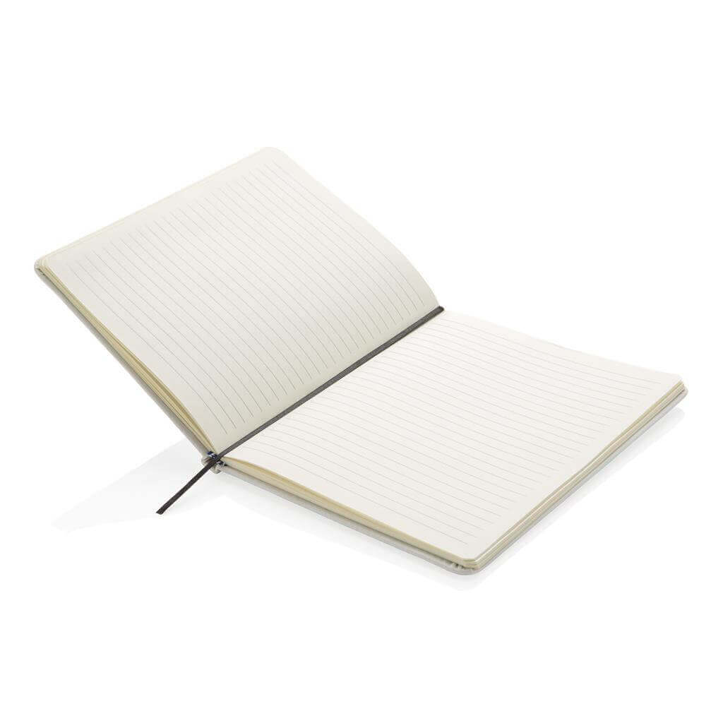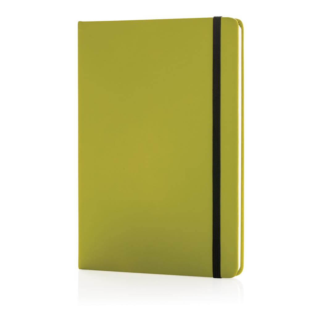 Klasický linkovaný poznámkový blok A5 v pevných deskách z PU s elastickou gumičkou a záložkou z černé stužky. Se 144 stranami krémového papíru s gramáží 70 g/m². PMS color 1: Black PMS color 1: White PMS color 1: 306 PMS color 1: 136