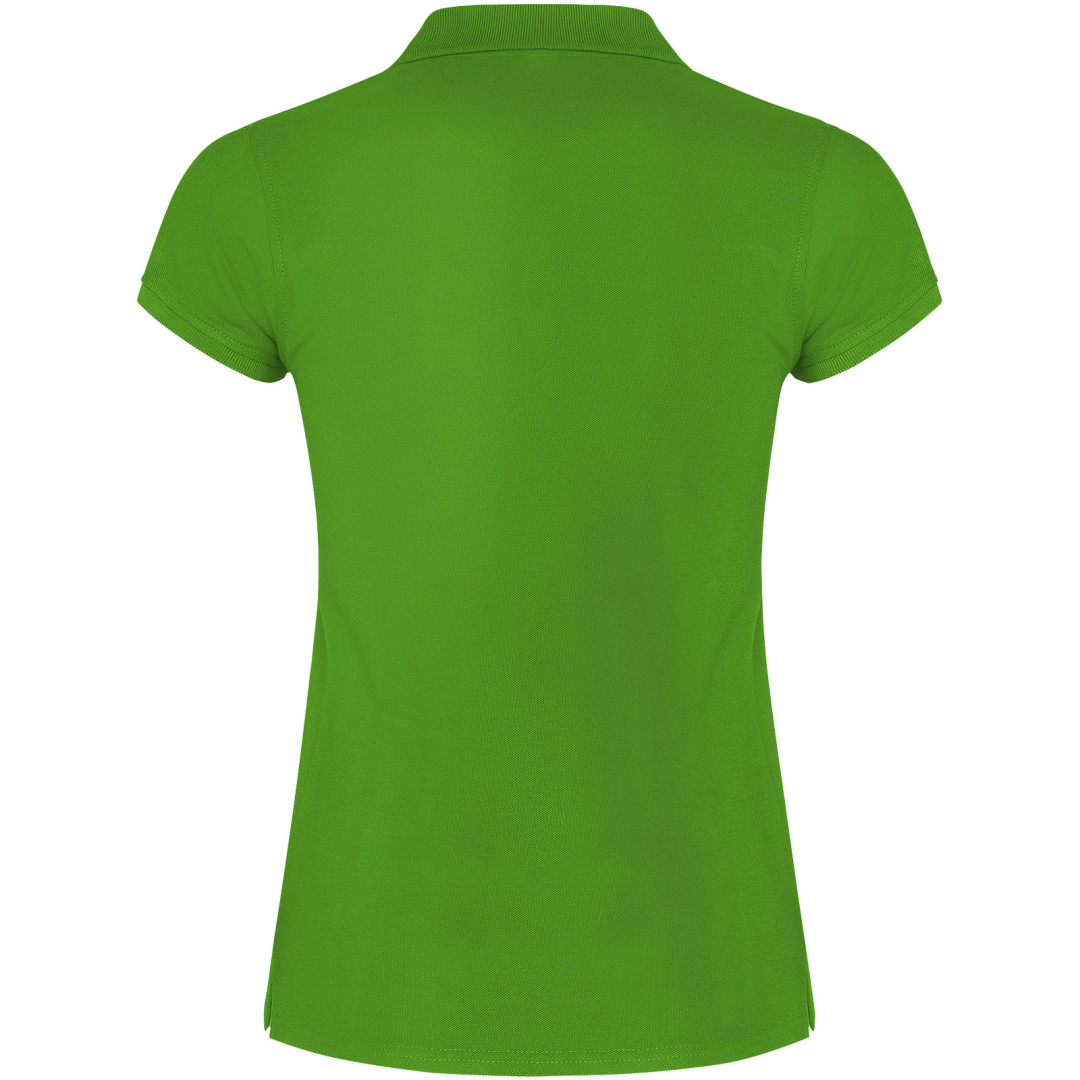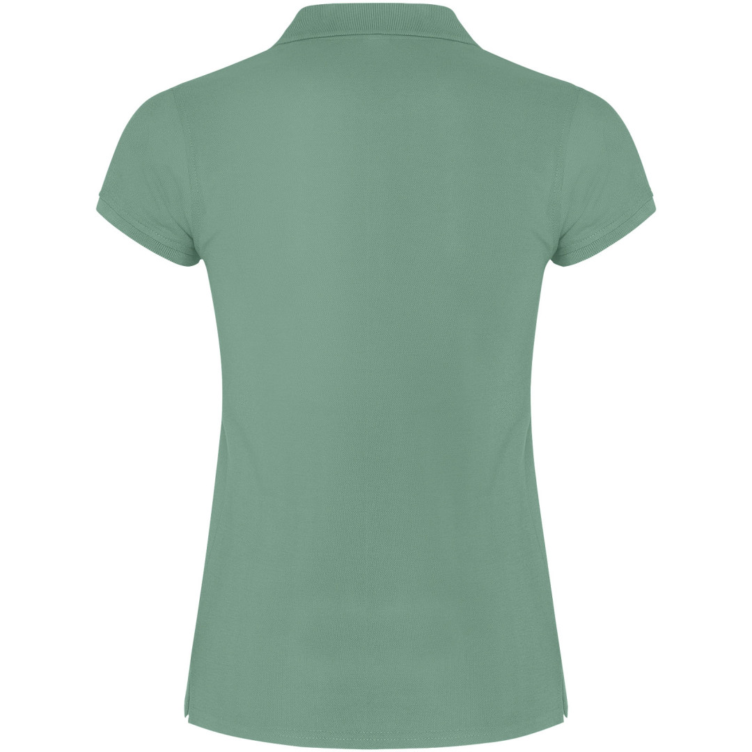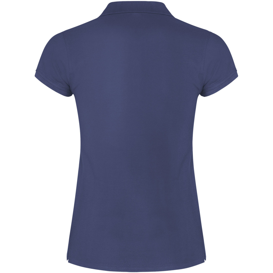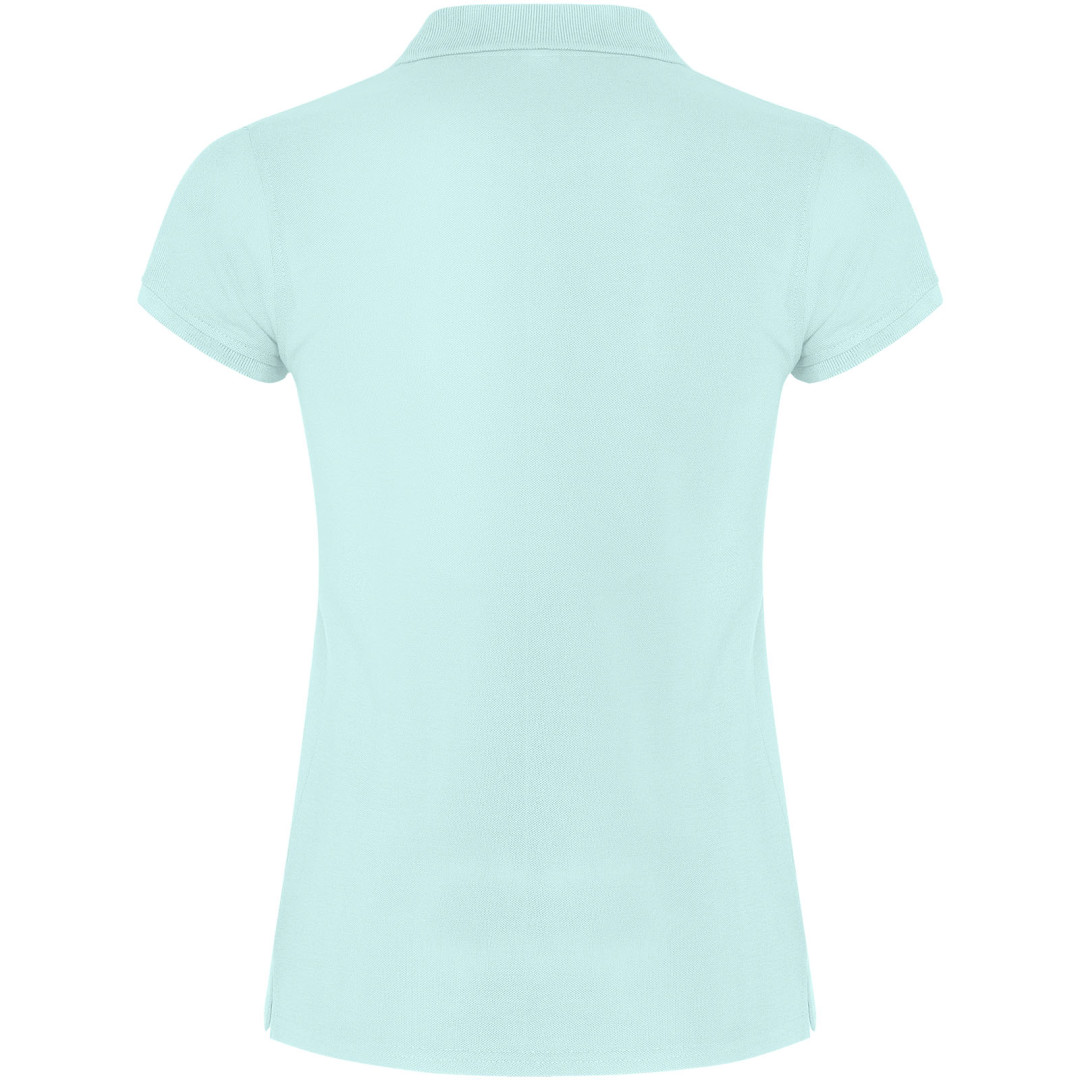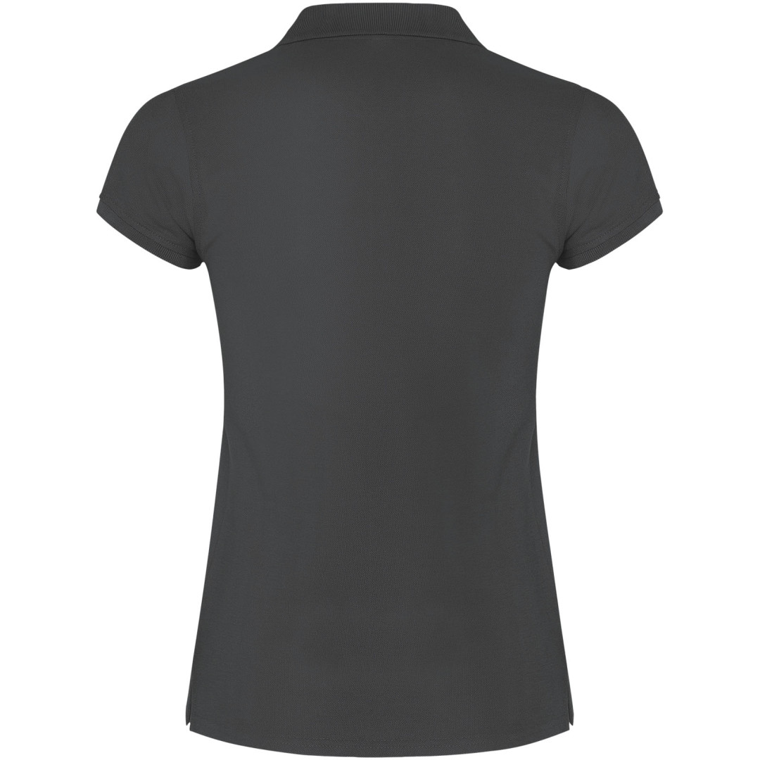 Dámské polo tričko s krátkým rukávem. Zesílené kryté švy ve vnitřním límci. Límec a manžety s žebrováním 1x1. Boční švy a vypasovaný střih. Úzké zapínání na 3 knoflíky. Boční rozparky. Odnímatelná etiketa. Modelka měří 179 cm a má na sobě velikost S.