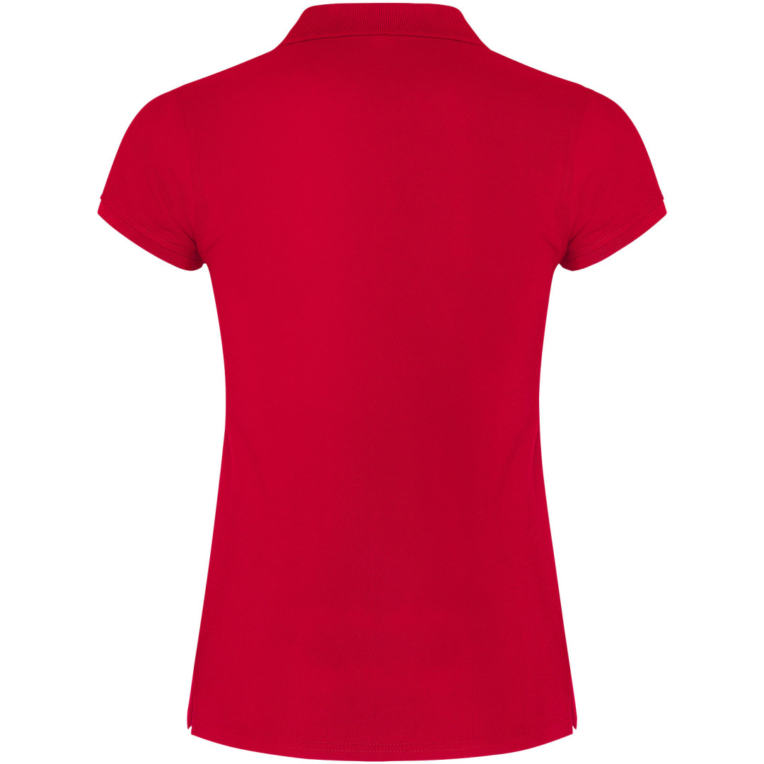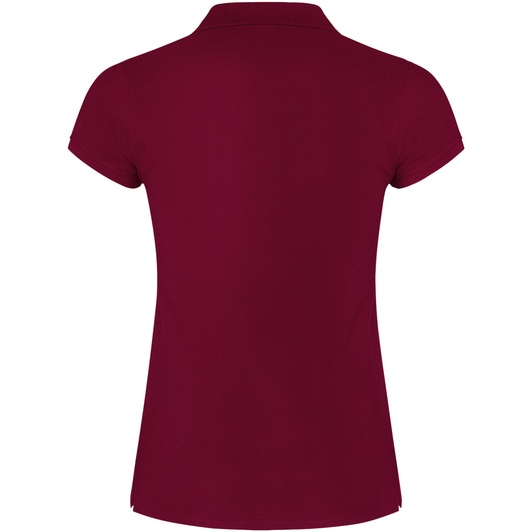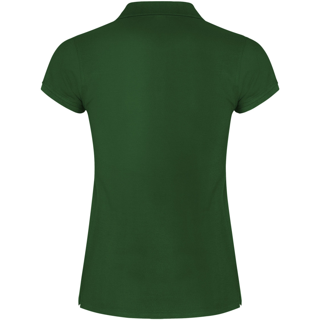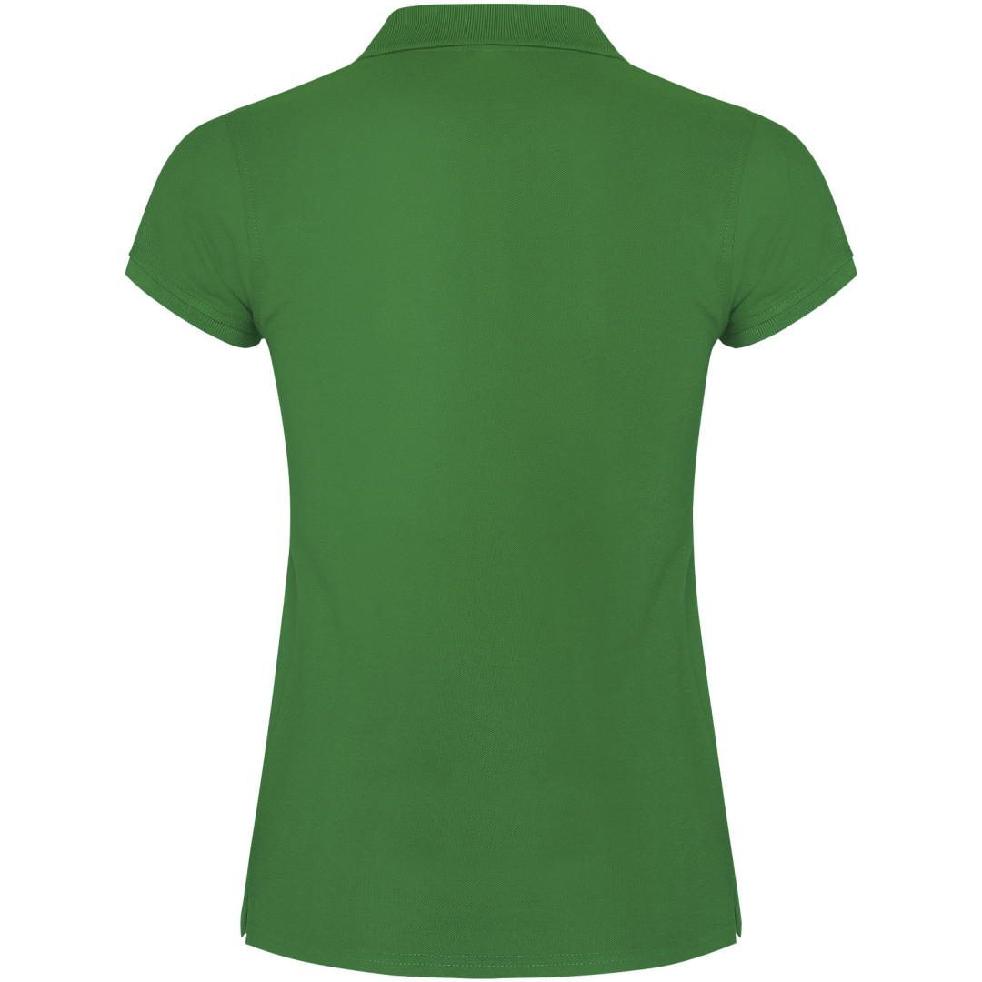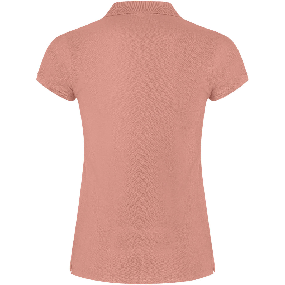 Dámské polo tričko s krátkým rukávem. Zesílené kryté švy ve vnitřním límci. Límec a manžety s žebrováním 1x1. Boční švy a vypasovaný střih. Úzké zapínání na 3 knoflíky. Boční rozparky. Odnímatelná etiketa. Modelka měří 179 cm a má na sobě velikost S.