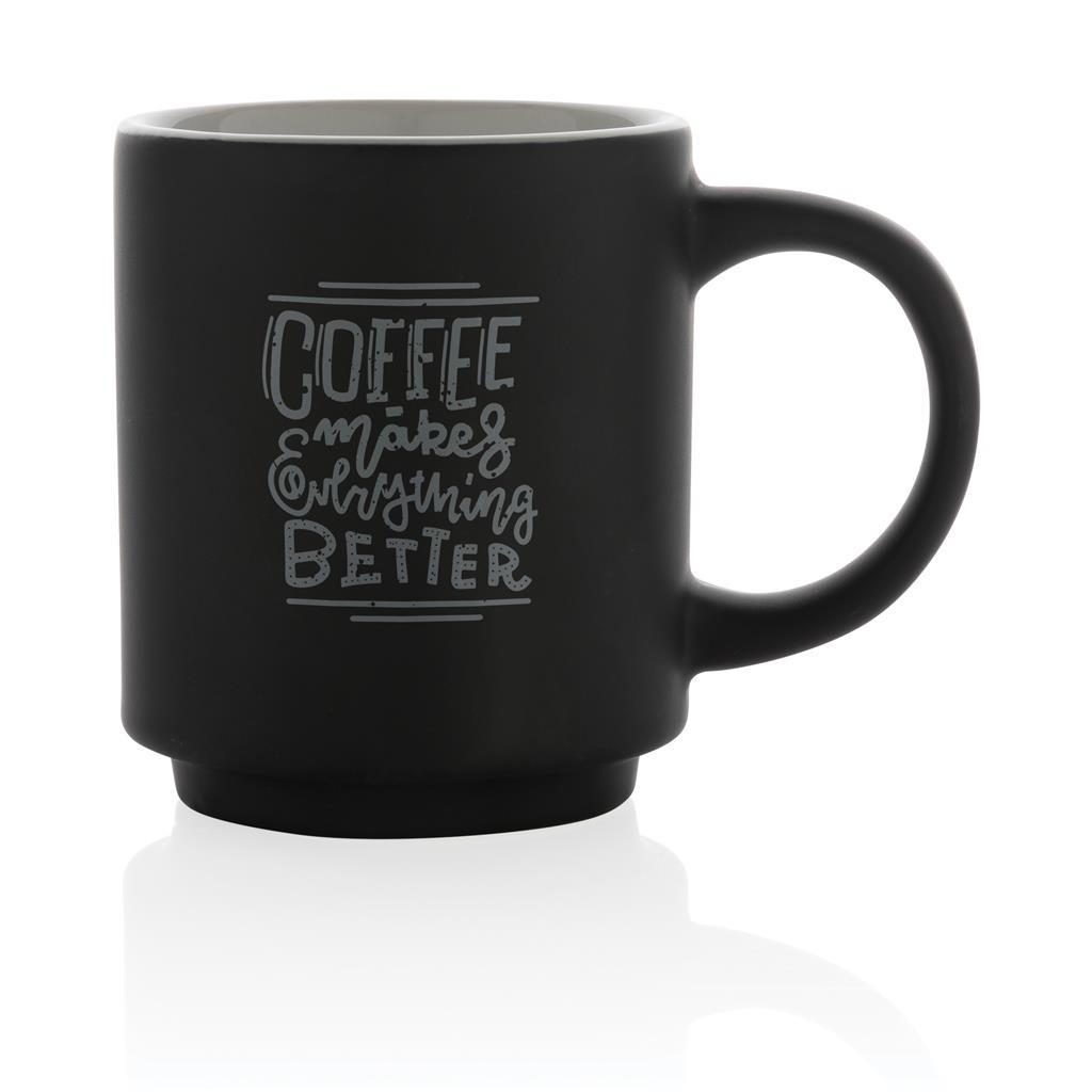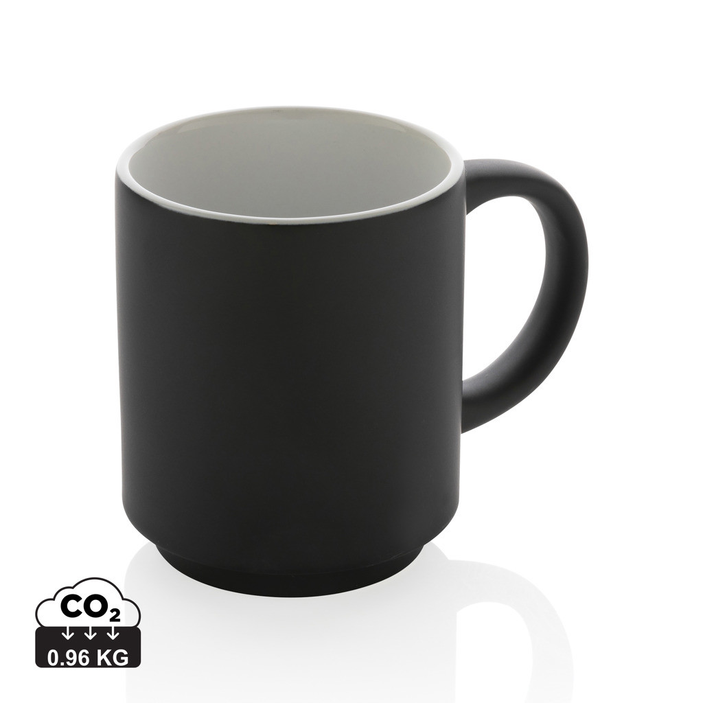 Kompaktní stohovatelný keramický hrnek pro snadné skladování a úsporu místa. Vhodné do myčky nádobí s odolností až 125 mycích cyklů pro jakoukoliv dekorační techniku (v souladu s EN12875-1). Baleno v dárkové krabičce. Objem: 180ml.