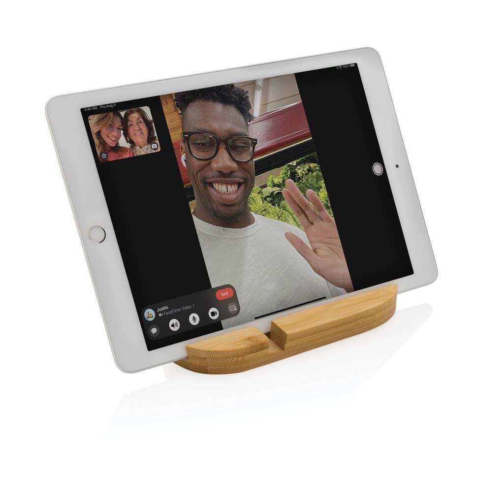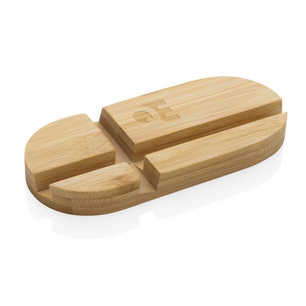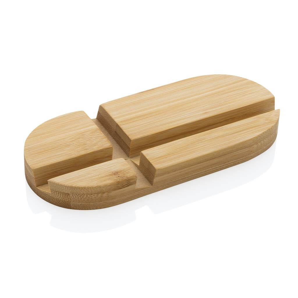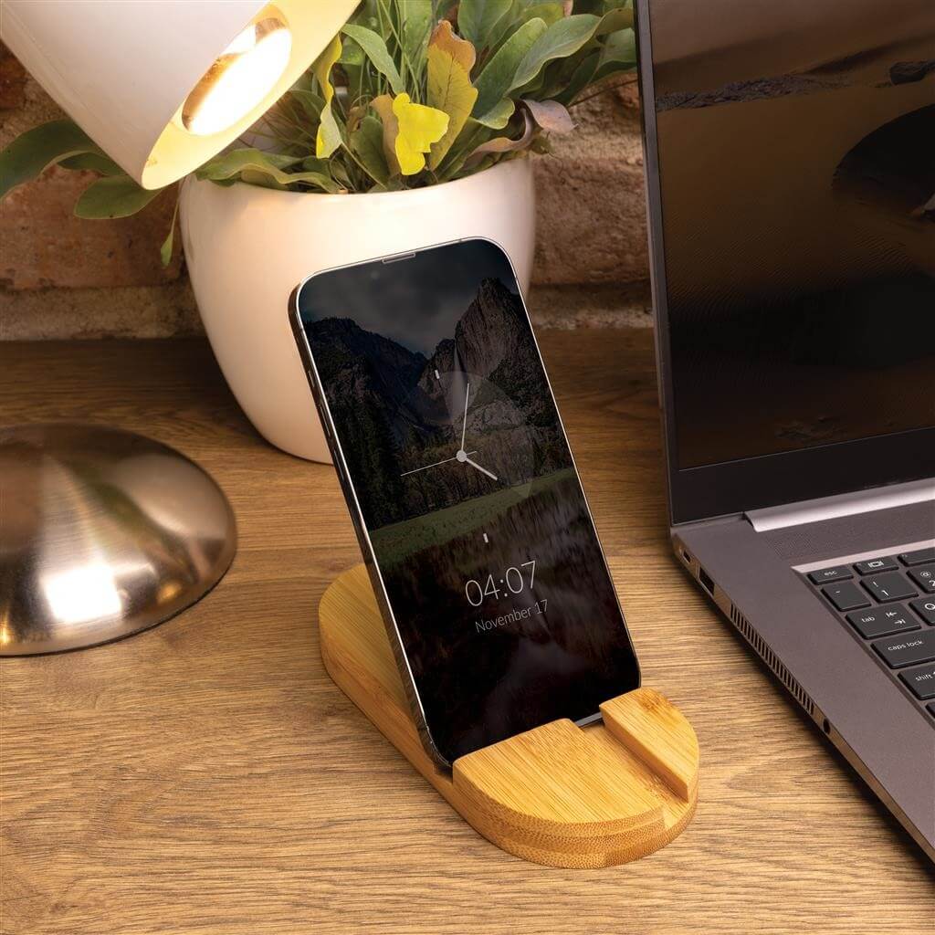 Stojánek vyrobený kompletně z přírodního bambusu. Ideální k umístění na stůl pokud pracujete z domova nebo třeba z kavárny. Stojánek je vhodný pro většinu telefonů i tabletů. Stačí jednoše nastavit vhodnou drážku, kratší pro telefony, delší pro tablety.