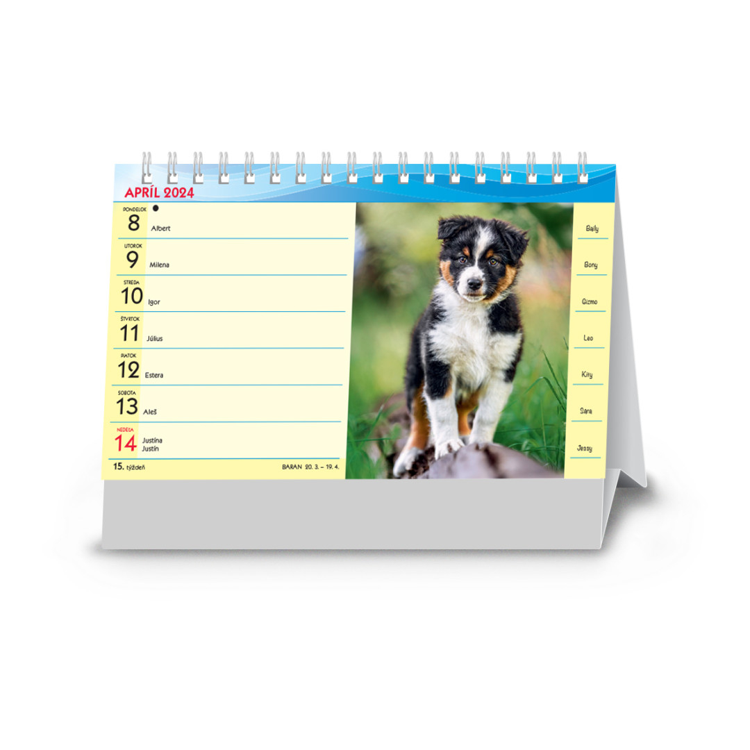 Praktický menší formát stolního řádkového kalendáře pro všechny milovníky nejlepších čtyřnohých přátel, doplněné psími jmény.Kalendárium: SKRozsah: 29 listů