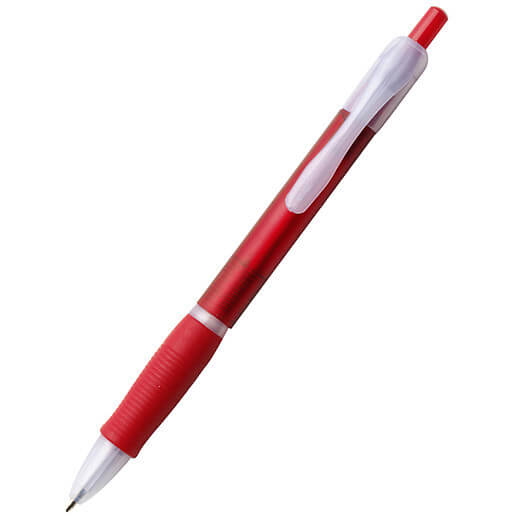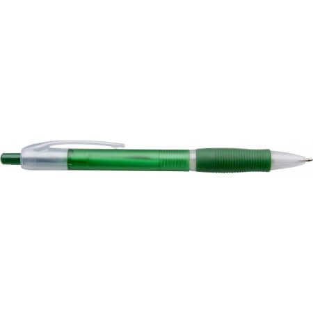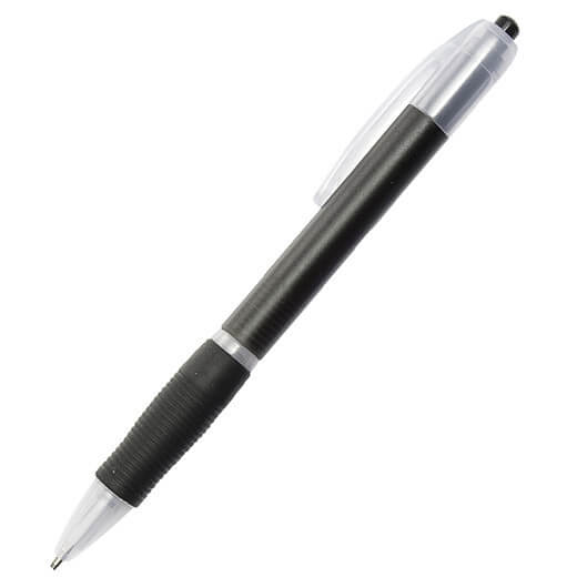 Matné plastové kuličkové pero s odpovídající barevnou gumovou rukojetí, černé i