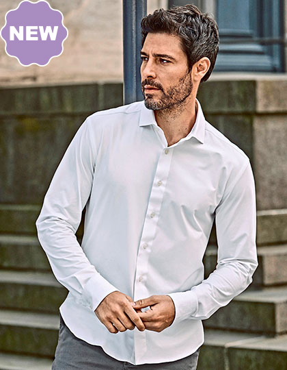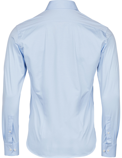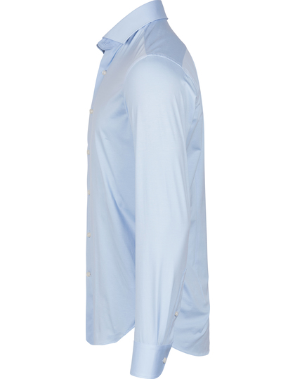 Předsrážená bavlna, Pletený jednoduchý žerzej. Čtyřsměrný streč. Vypasovaný střih. Široký límec. Manžeta moderního tvaru. Sklad vzadu. S odvodem vlhkosti. Rychleschnoucí. Snadné praní a péče.