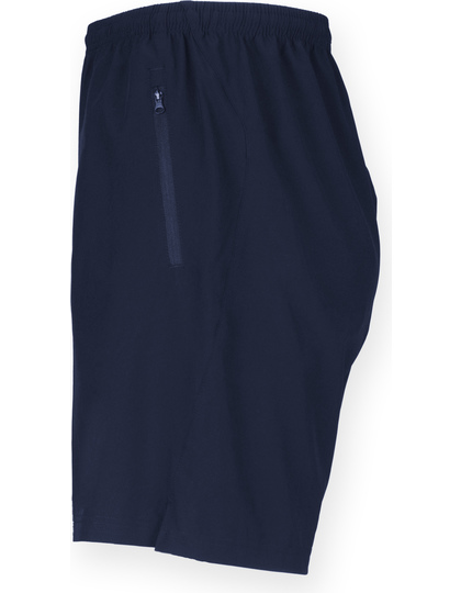 Čtyřsměrně strečový materiál z mikrovlákna. Plně elastický pas s vnitřní stahovací šňůrkou. Bez podšívky. Boční kapsy na zip. Kapsa na klíče se zipem na zadní straně. Sladěný síťovaný díl v rozkroku / na vnitřní části nohavic. 120 g/m².