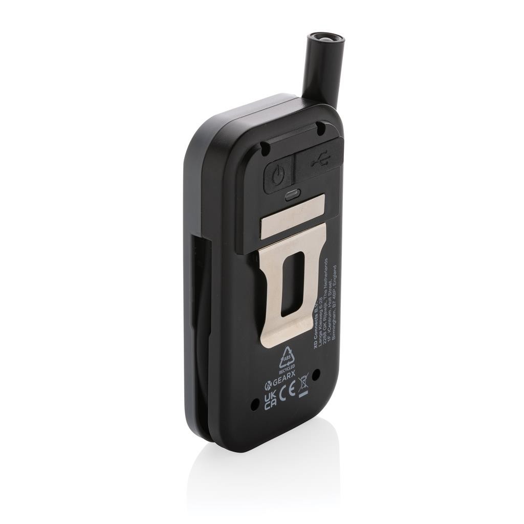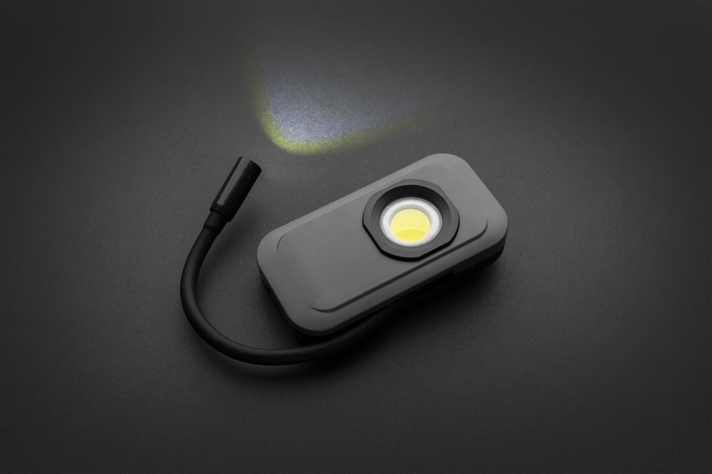 Opakovaně dobíjetelná odolná pracovní svítilna. Obsahuje COB (260 lumenů) pro osvětlení blízkého prostoru a nastavitelné LED (80 lumenů) pro osvětlení vzdálenosti. 3 režimy: LED, COB, 50 % COB. Včetně magnetu a na zadní straně. Zabudovaná 1 000 mAh baterie pro svícení po dobu až 3h na jedno nabití. Vyrobeno z RCS recyklovaného ABS plastu. RCS (Recycled Claim Standard) je globální standard, který umožňuje ověřit použití recyklovaného materiálu v produktu napříč celým dodavatelským řetězcem. Podíl použitého recyklovaného materiálu vzhledem k celkové váze produktu: 36 %. Včetně USB C nabíjecího kabelu. 1 baterií typu Rechargeable súčasťou balenia.