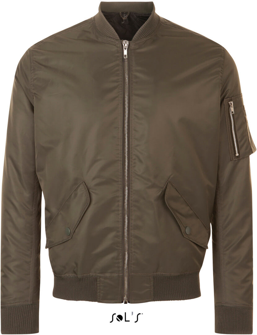 60g/m², vně: 100% nylon, voděodolná, podšívka: 100% polyester, lehké vatování: 100% polyester stojací límec z žebrového úpletu, zip stříbrné barvy, kapsa na rukávu na zip, 2 boční kapsy zapínání na druky, žebrový úplet lemu a rukávů