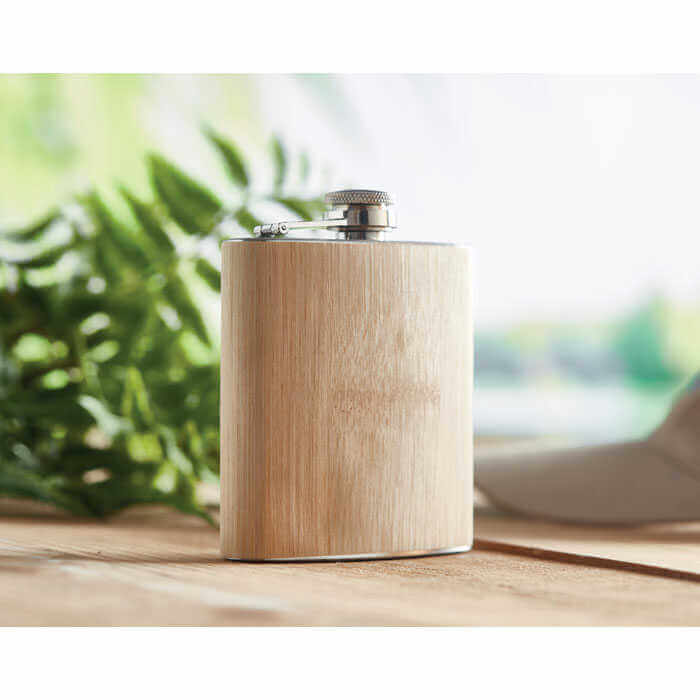 Stylová placatka s bambusovým povrchem. Objem 175 ml. Někdy se prostě potřebujete trochu napít, abyste se zahřáli. Tato placatka na likér nebo whisky má objem 175 ml. Skvělý dárek pro připomenutí jakékoli zvláštní příležitosti. Bambus je přírodní materiál, u každého jednotlivého kusu se mohou vyskytnout drobné odchylky v barvě a velikosti, které mohou mít vliv na finální podobu potisku.