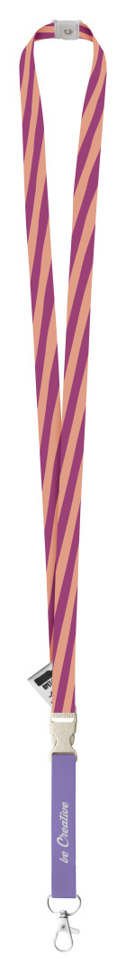 Polyesterový lanyard 15 mm RPET na zakázku s oddělitelnou kovovou karabinkou a bezpečnostní přezkou z pšeničné slámy, se sublimačním potiskem na obou stranách.