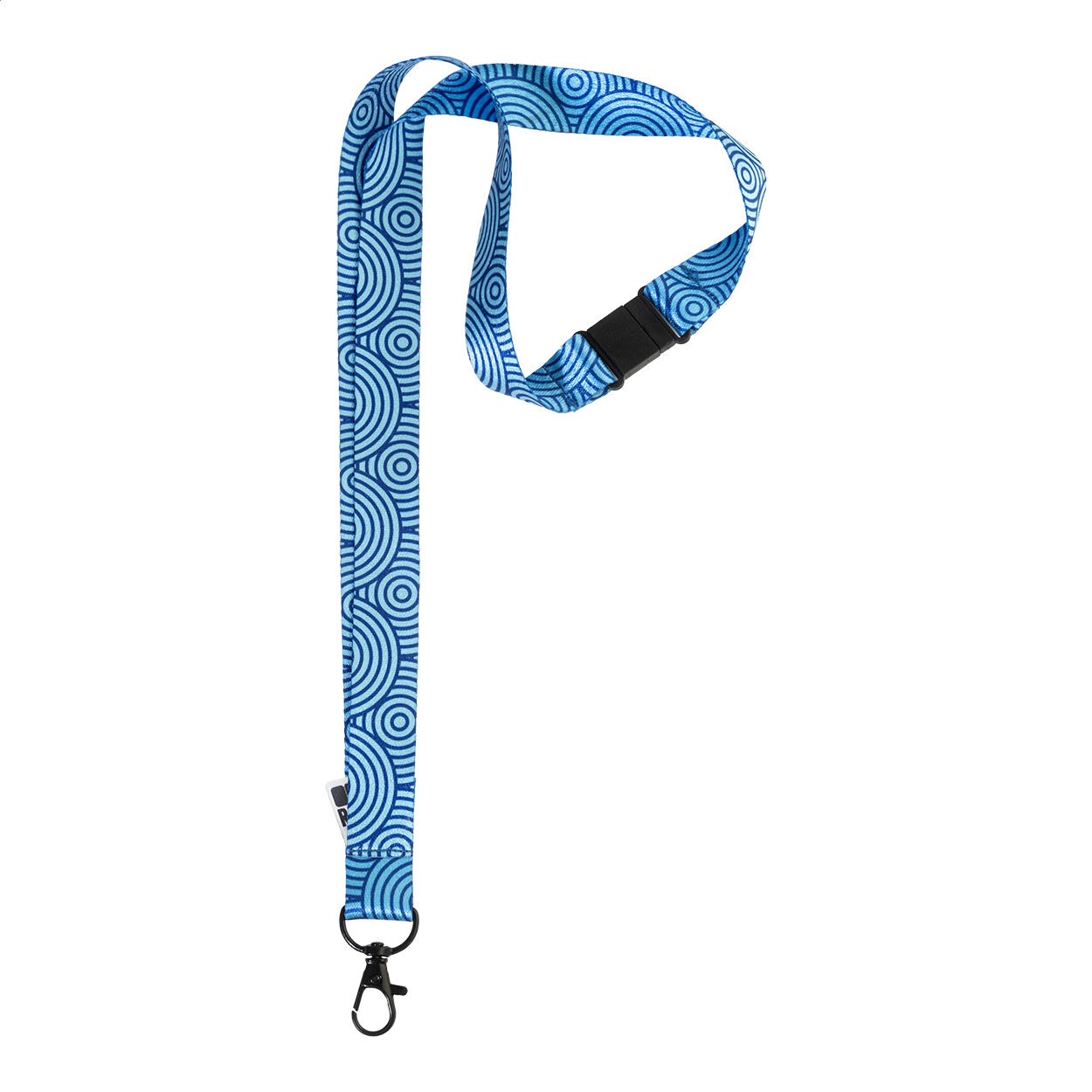 Lanyard na zakázku z RPET s barevnou kovovou karabinou a bezpečnostní sponou. S oboustranně potištěnou grafikou, cena nezahrnuje tiskovou přípravu. Min. mn.: 100 ks. New. Be Creative