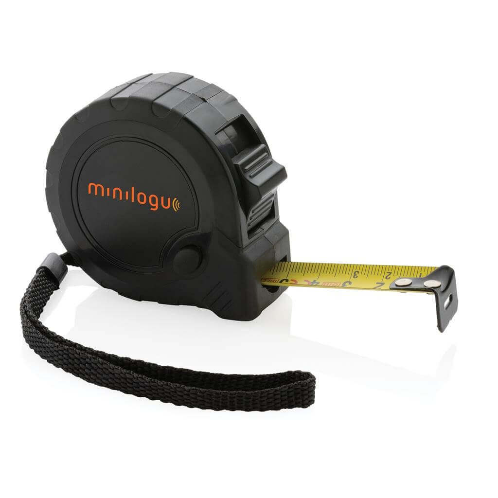 Svinovací metr s délkou 5 m vyrobený z RCS recyklovaného ABS plastu. RCS (Recycled Claim Standard) je globální standard, který umožňuje ověřit použití recyklovaného materiálu v produktu napříč celým dodavatelským řetězcem. Celkový podíl recyklátu dle váhy produktu: 15 %. 19 mm široké žluté pásmo s ocelovým háčkem. TRP pogumovaná úprava pro pohodlný úchop, poutko na zápěstí, tlačítko pro uzamčení/uvolnění, extra tlačítko pro zastavení na straně. Baleno v FSC® kraftové dárkové krabičce.
