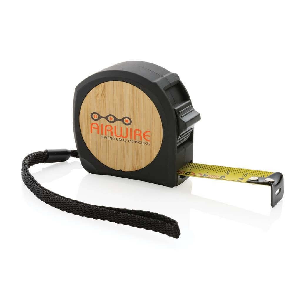 Svinovací metr s délkou 5 m vyrobený z RCS recyklovaného ABS plastu. RCS (Recycled Claim Standard) je globální standard, který umožňuje ověřit použití recyklovaného materiálu v produktu napříč celým dodavatelským řetězcem. Celkový podíl recyklátu dle váhy produktu: 11 %. Stylový detail ze 100 % FSC® bambusu. 19 mm široké žluté pásmo s ocelovým háčkem. Poutko na zápěstí, tlačítko pro uzamčení/uvolnění. Baleno v FSC® kraftové dárkové krabičce.