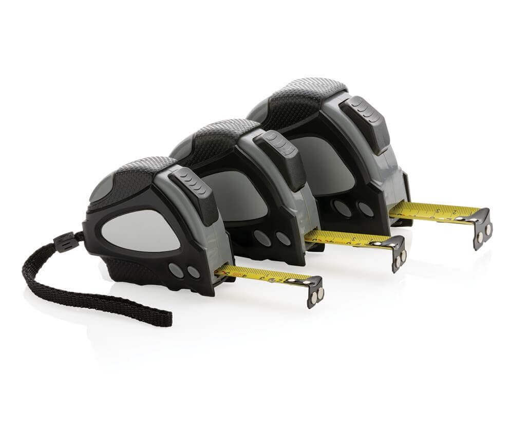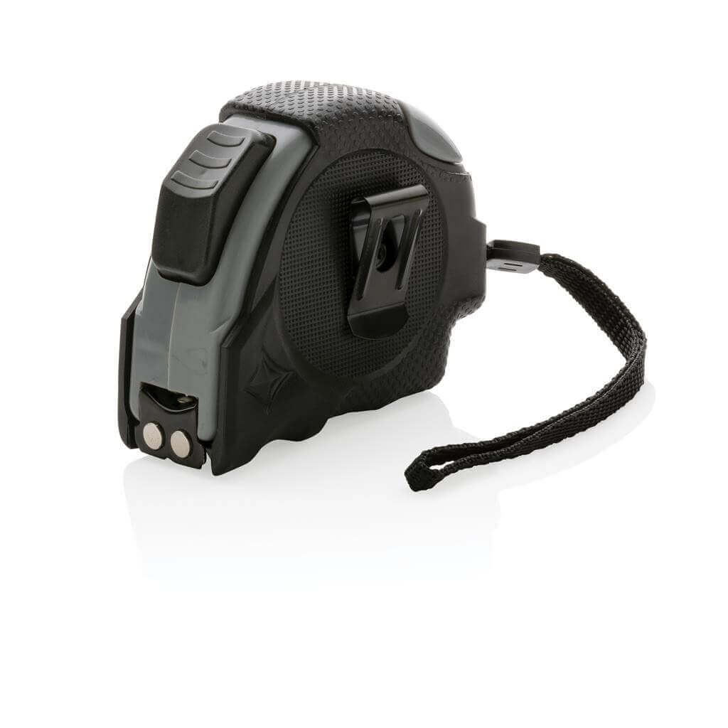Svinovací metr s délkou 5 m vyrobený z RCS recyklovaného ABS plastu. RCS (Recycled Claim Standard) je globální standard, který umožňuje ověřit použití recyklovaného materiálu v produktu napříč celým dodavatelským řetězcem. Celkový podíl recyklátu dle váhy produktu: 14 %. 19 mm široké žluté pásmo s ocelovým háčkem a 2 integrovanými magnety. Prémiově pogumovaná úprava pro pohodlný úchop, poutko na zápěstí, tlačítko pro uvolnění na horní a spodní straně. Baleno v FSC® kraftové dárkové krabičce.