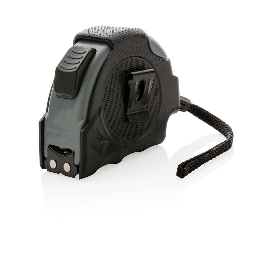 Svinovací metr s délkou 8 m pro náročné, vyrobený z RCS recyklovaného ABS plastu. RCS (Recycled Claim Standard) je globální standard, který umožňuje ověřit použití recyklovaného materiálu v produktu napříč celým dodavatelským řetězcem. Celkový podíl recyklátu dle váhy produktu: 11 %. 25 mm široké žluté pásmo s ocelovým háčkem a 2 integrovanými magnety. Prémiově pogumovaná úprava pro pohodlný úchop, poutko na zápěstí, tlačítko pro uvolnění na horní a spodní straně. Baleno v FSC® kraftové dárkové krabičce.