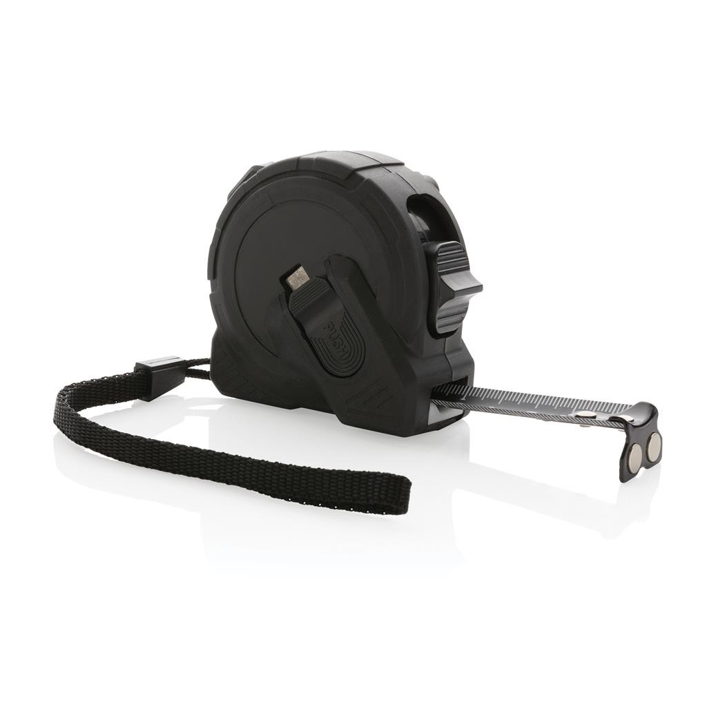 Stylový svinovací metr s vysoce kvalitním 5 m/19mm karbonovým pásmem. Odolné pouzdro s funkcí zámku a klipem na opasek. Oproti většině modelům na trhu nabízí dvě rychlosti svinování - pomalé a rychlé. Dva silné magnety na háčku na konci pásma. Potisk je vysoce trvanlivý a odolný oděrům. Baleno v luxusní dárkové krabičce.