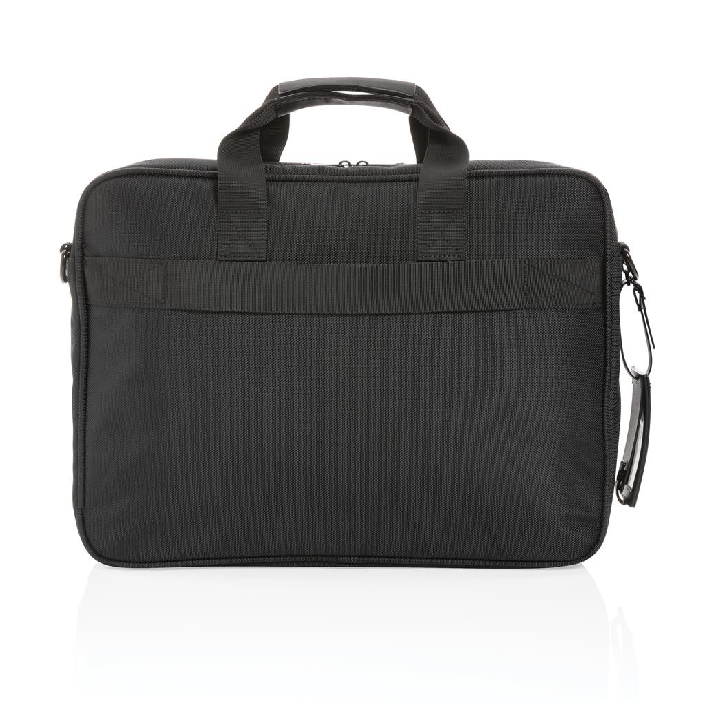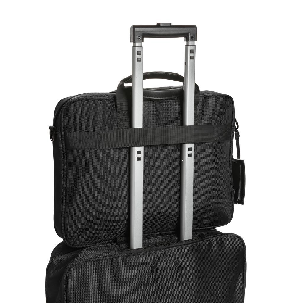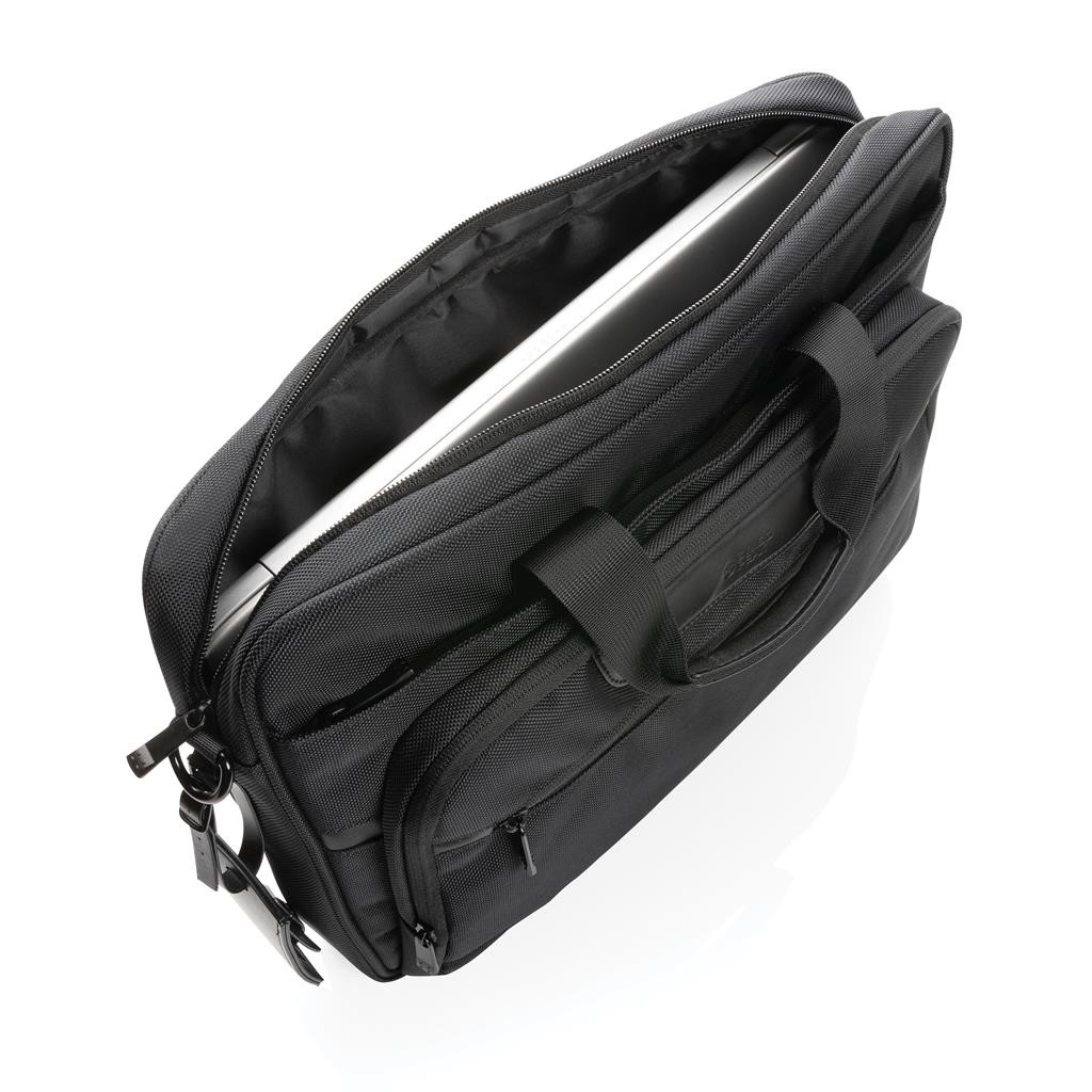 Elegantní skvěle vybavená taška pro každodenní cestování. Vyrobená z pevného recyklovaného polyesteru 1680D s bohatými detaily z umělé kůže a množstvím kapes. Prostorný hlavní oddíl, polstrovaný oddíl na 15,6" notebook, dodatečná menší kapsa na zip. USB výstup pro nabíjení telefonu na cestách, kapsy s RFID ochranou, poutka na pera, postranní kapsa na lahev a odnímatelný kontaktní štítek. Složení: vnější část: 100 % 1680D recyklovaný polyester; vnitřní část (podšívka): 150D recyklovaný polyester. Včetně skenovatelné složky AWARE™ garantující obsah recyklátu. Na výrobu bylo využito 36,66 500ml PET lahví a bylo uspořeno 21,8 litrů vody. Z výtěžku každého prodaného produktu je navíc přispěno 2 % na podporu iniciativy Water.org.
