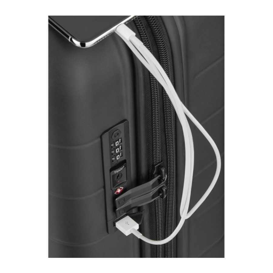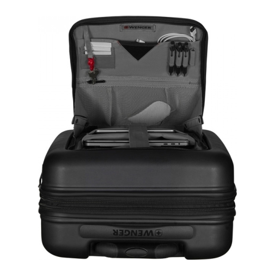 Robustní, ale dokonale přenosný Syntry kufr je vysokokapacitní na kolečkách s přesným manévrováním. V přední přihrádce se bezpečně vejde váš 14palcový notebook a 10palcový tablet. Bezpečný díky kombinaci zámku a bezpečnostního zipu. Má také USB nabíječku. Čtyři super tichá kolečka usnadňují jízdu.