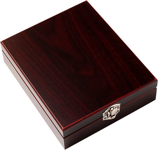 Luxusní souprava pro milovníky vína, 4 ks, v dřevěné dárkové krabici, materiál dřevo/kov. Doporučena technologie tisku: tampontisk T3, laser L2 Maximální velikost tisku: 50 × 20 mm Rozměry: 15 × 17,5 × 5 cm Kartonové množství v ks: 20