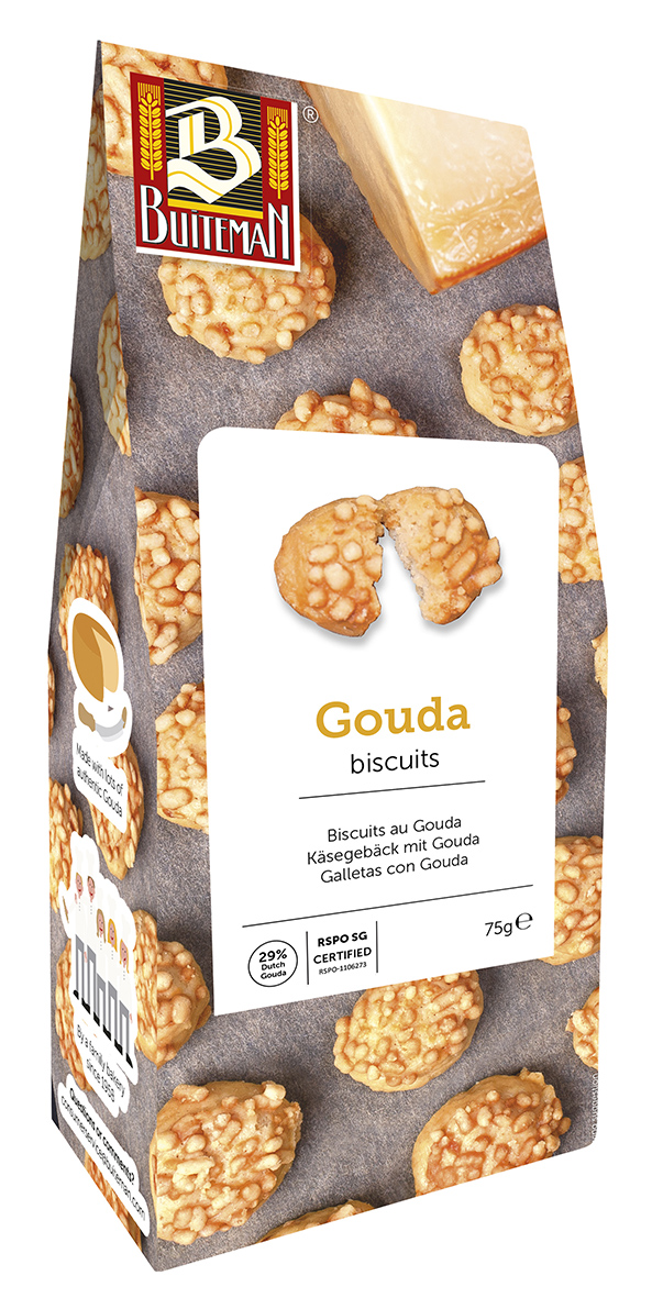 Sýrový snack se sýrem GOUDA obsahuje 29% autentického vyzrálého sýra Gouda. Sušenky jsou promíchané a posypané strouhanou Goudou a následně pečené do křupava, díky čemuž získávají drobivou konzistenci a bohatou sýrovou chuť. Oceněno zlatou hvězdou Great Taste Awards 2020. Ideální jako lahodný snack k červenému vínu Ruby Port nebo ke zpříjemnění každého posezení.