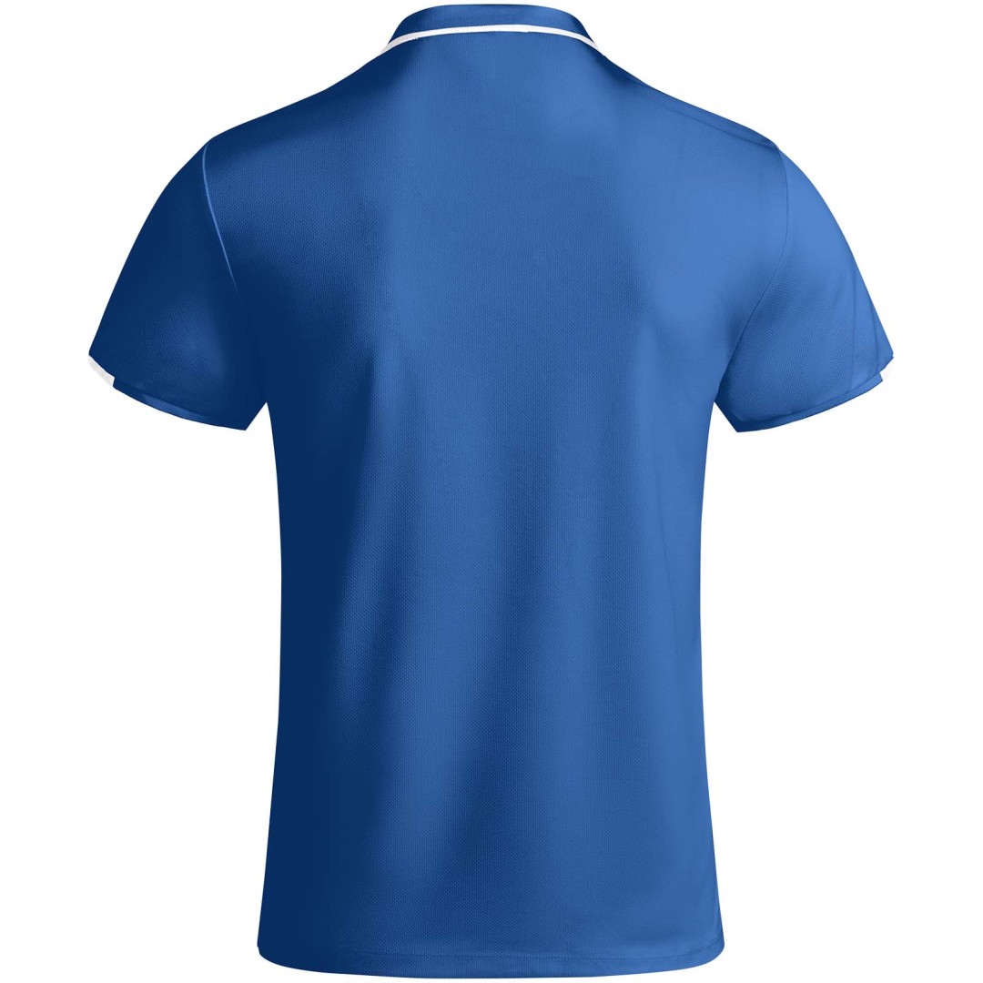 Antibakteriální látka z recyklovaného polyesteru. 1 × 1 žebrovaný límec a detail na rukávech. Zesílené kryté švy v límci. Zapínání na 2 skryté knoflíky. Kontrastní detaily a ramena. Boční rozparky na lemu. Odnímatelný štítek.