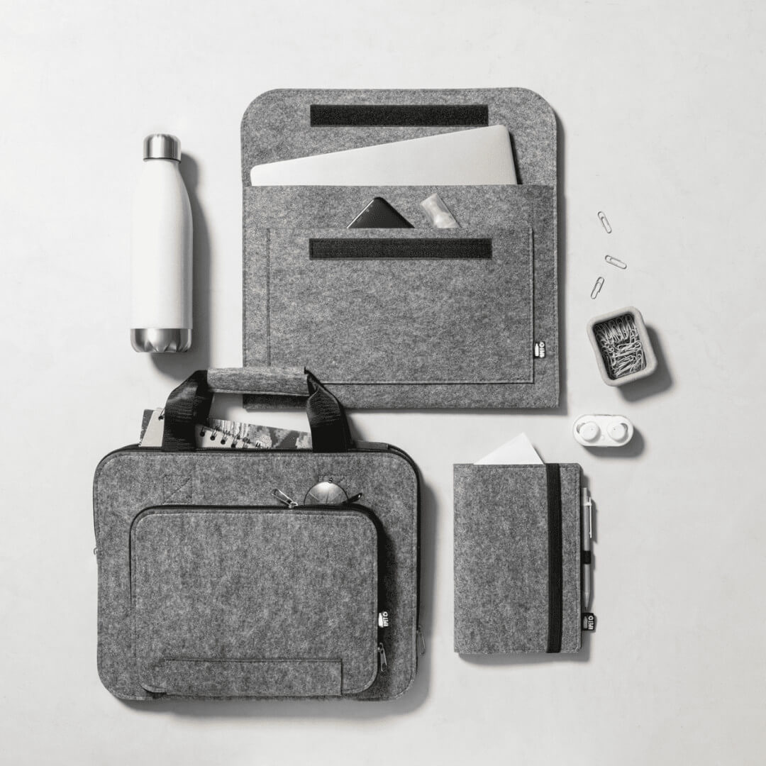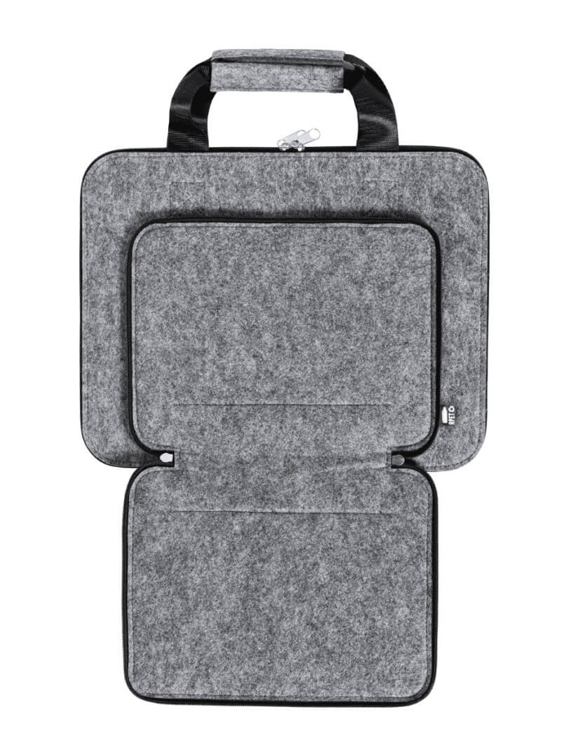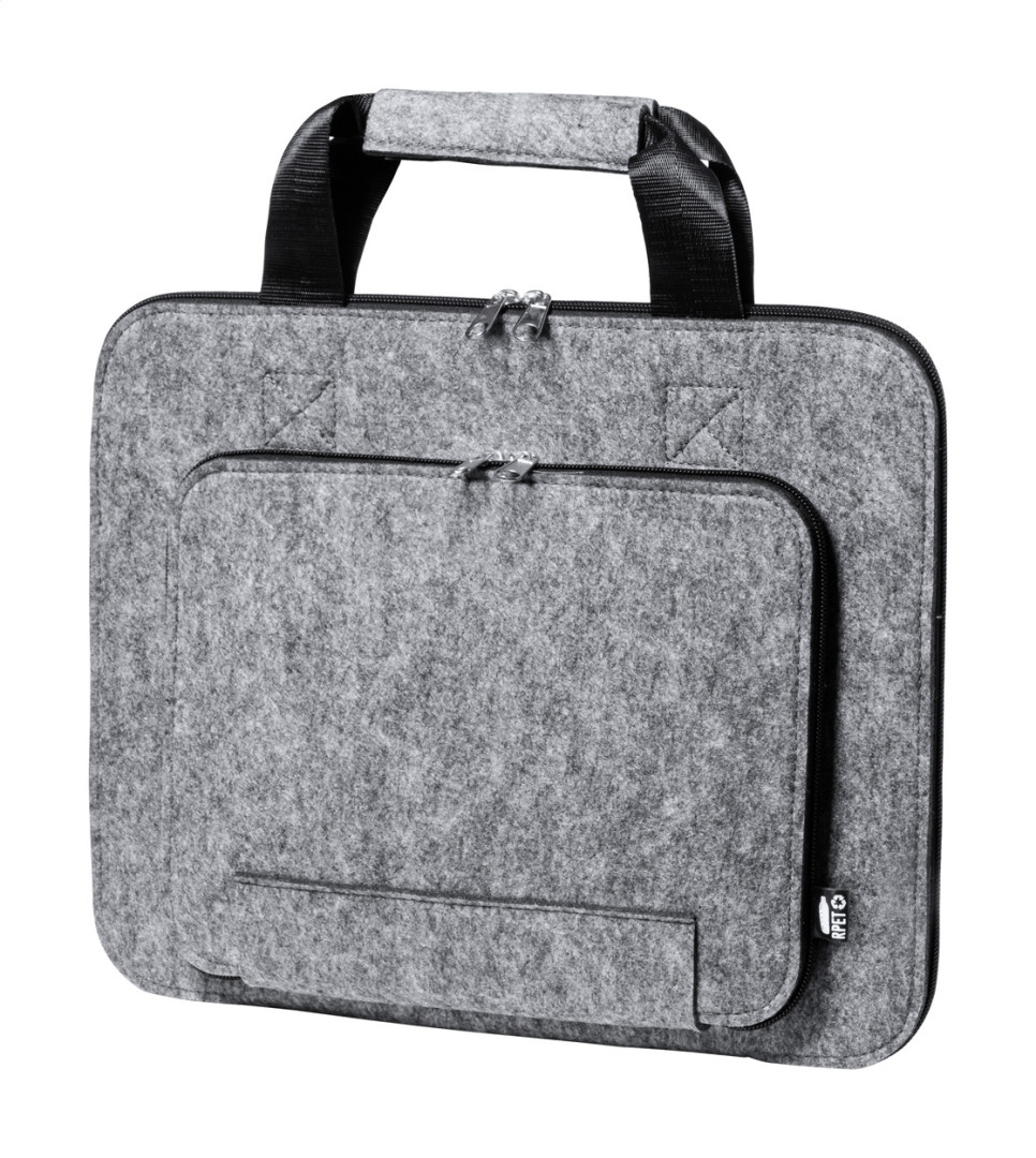 Taška na dokumenty z RPET plsti s přihrádkami na zip, uchy a výrazným štítkem RPET.