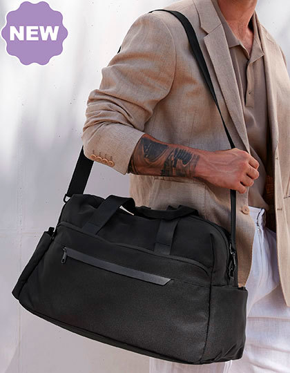 100 % recyklovaný polyester 600D | Minimalistický styl | Hlavní kapsa na zip | Prvotřídní povrchová úprava vnitřní podšívky | Tři kapsy uvnitř hlavního oddílu | Dvě velké zasunovací koncové kapsy | Zadní kapsa na zip slouží zároveň jako rukáv, kterou lze natáhnout přes rukojeť kufru | Vnější přední kapsa na zip s klopou proti dešti a vnitřními kapsami | Odnímatelný nastavitelný ramenní popruh | Ucha na přenášení z prémiové popruhoviny | Odtrhávací štítek | Velikost palubního zavazadla do prostoru nad hlavou – vhodné pro většinu leteckých společností