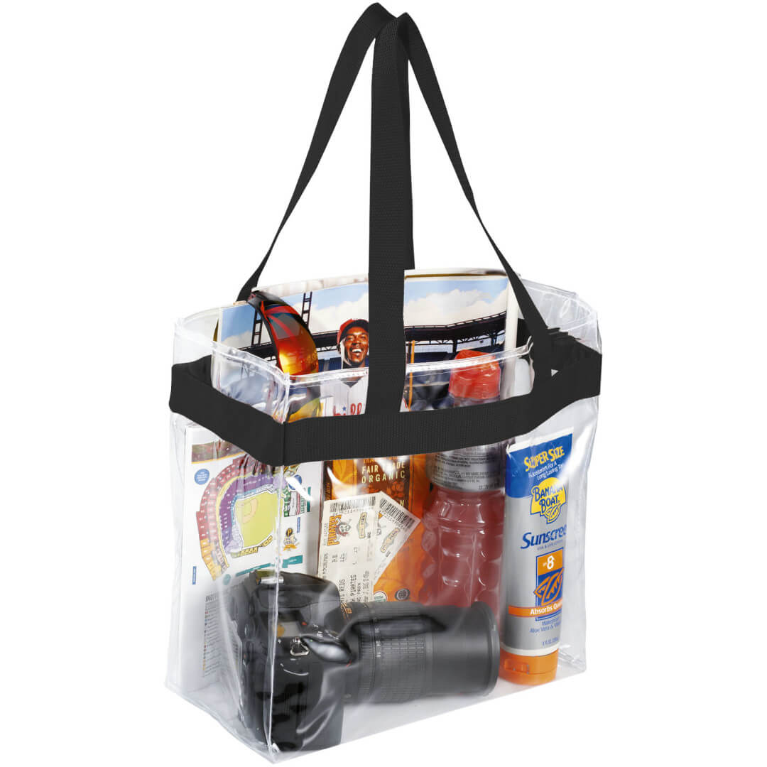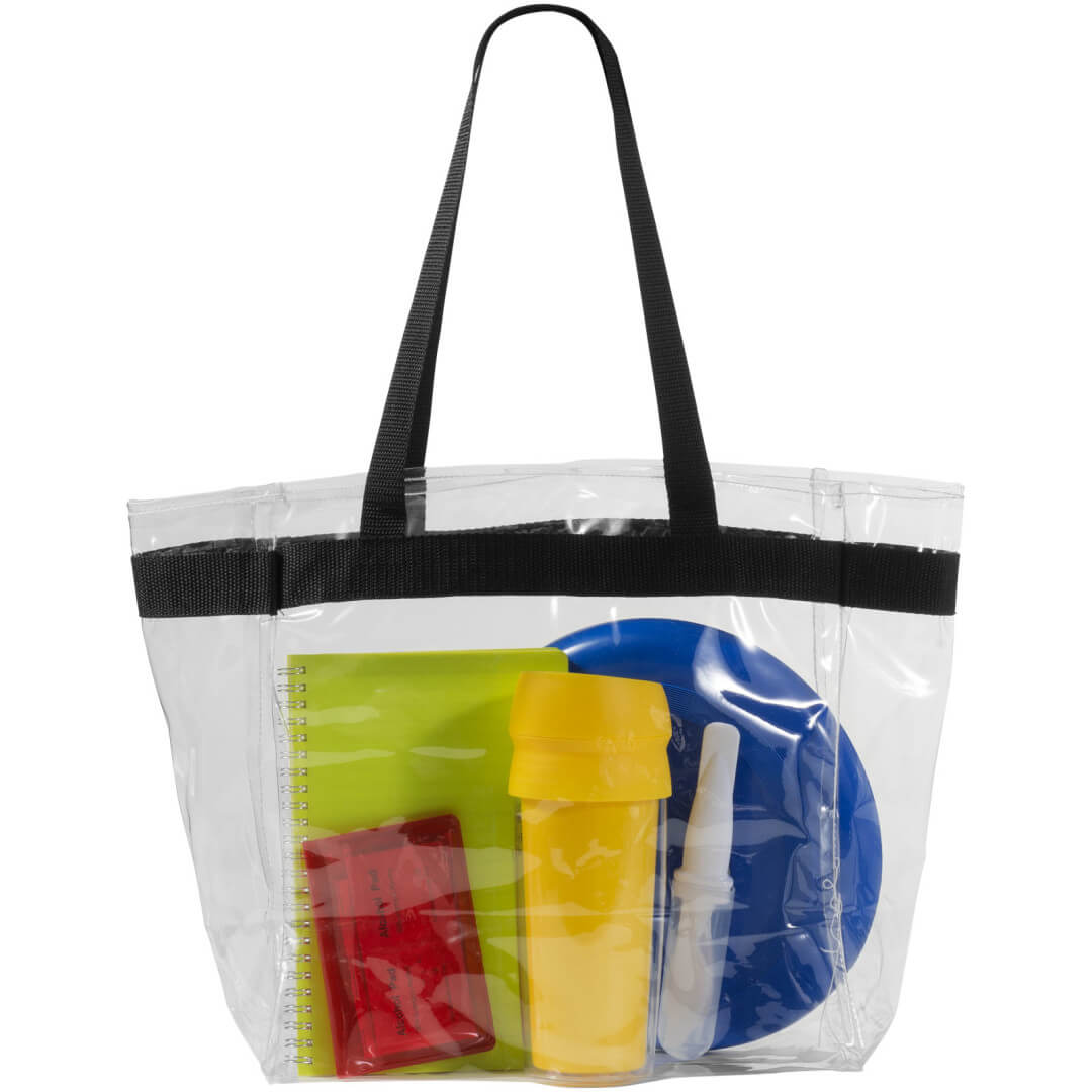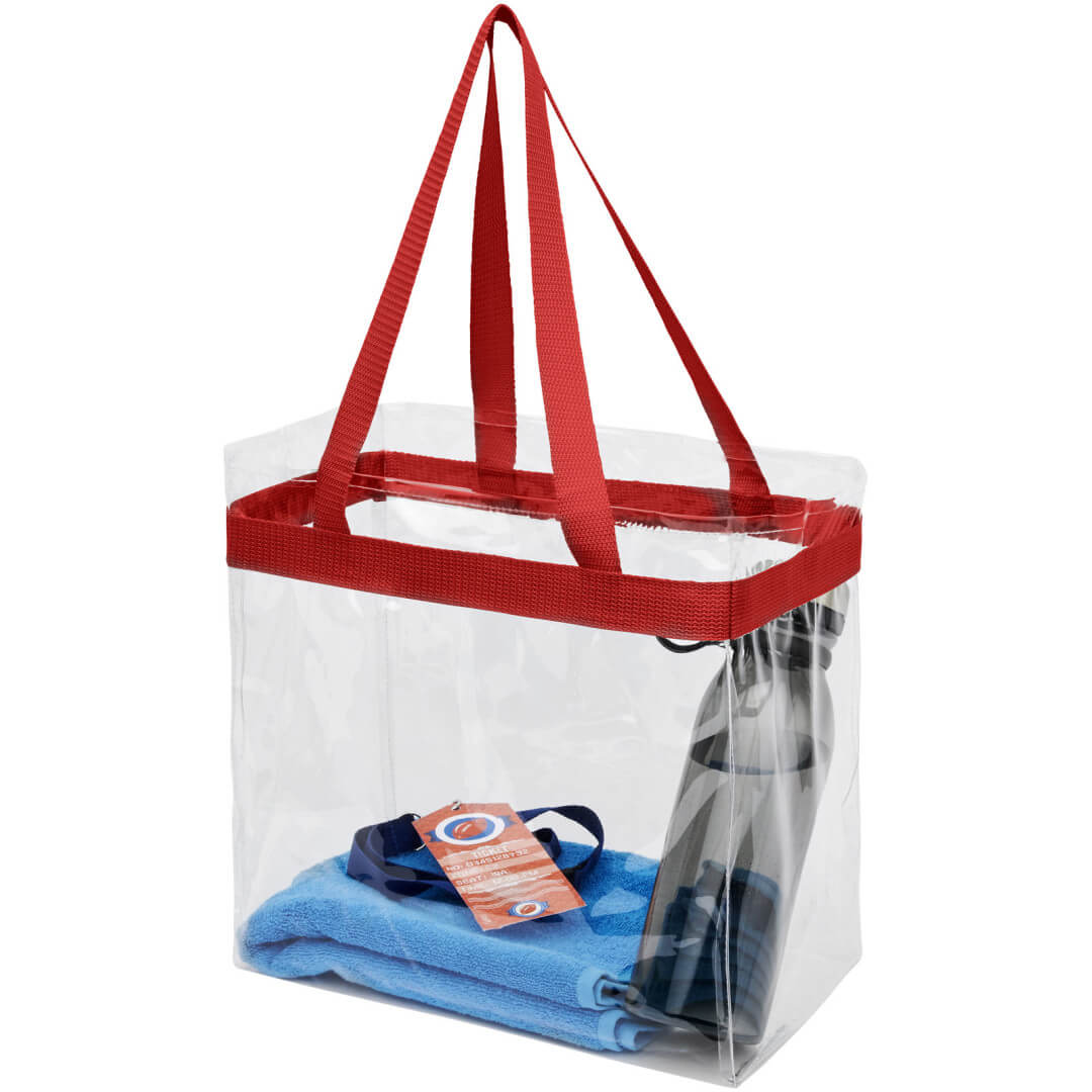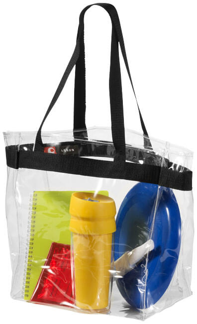 Tato průhledná odnoska je ideální pro fanoušky, aby mohli bezpečně přenášet své předměty na stadion a další akce. Rovněž skvěle zajistí bezpečný přenos věcí do práce nebo do školy. Otevřený hlavní prostor se sportovním lemem z tkaného pásku a dvojitými uchy. Nosná výška popruhů 24 cm. Příslušenství není součástí. PVC.
