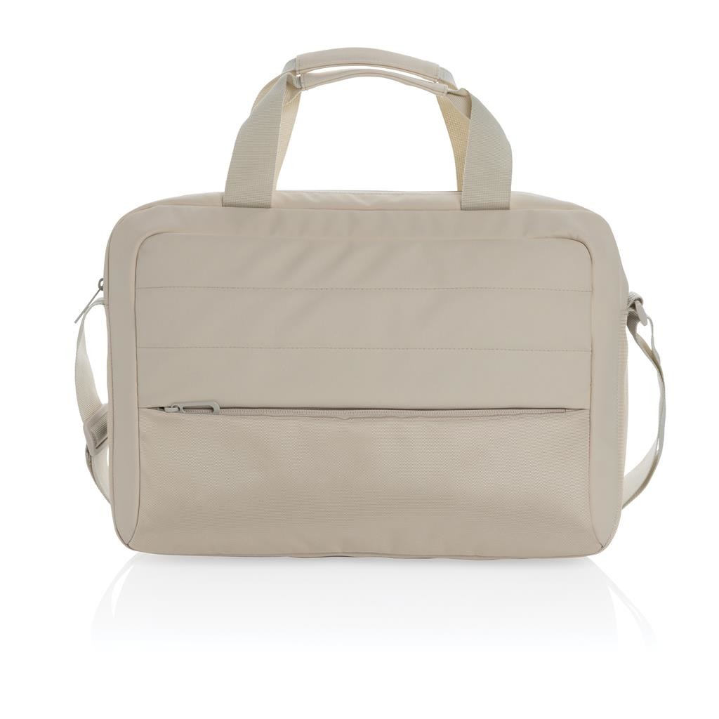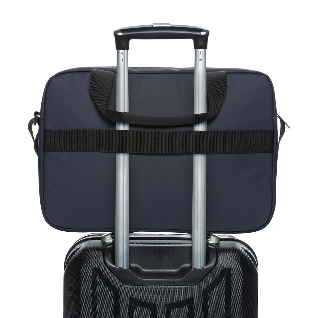 Taška v klasickém designu s prostorem pro až 15,6" notebook. Akcentové prošití na přední straně, více kapes pro organizaci obsahu, dvě horní ucha, přizpůsobitelný ramenní popruh. Vyrobeno z recyklovaného polyesteru s obsahem skenovatelné složky AWARE™ garantující obsah recyklátu. Z výtěžku každého prodaného produktu je přispěno 2 % na podporu iniciativy Water.org. Bez PVC.