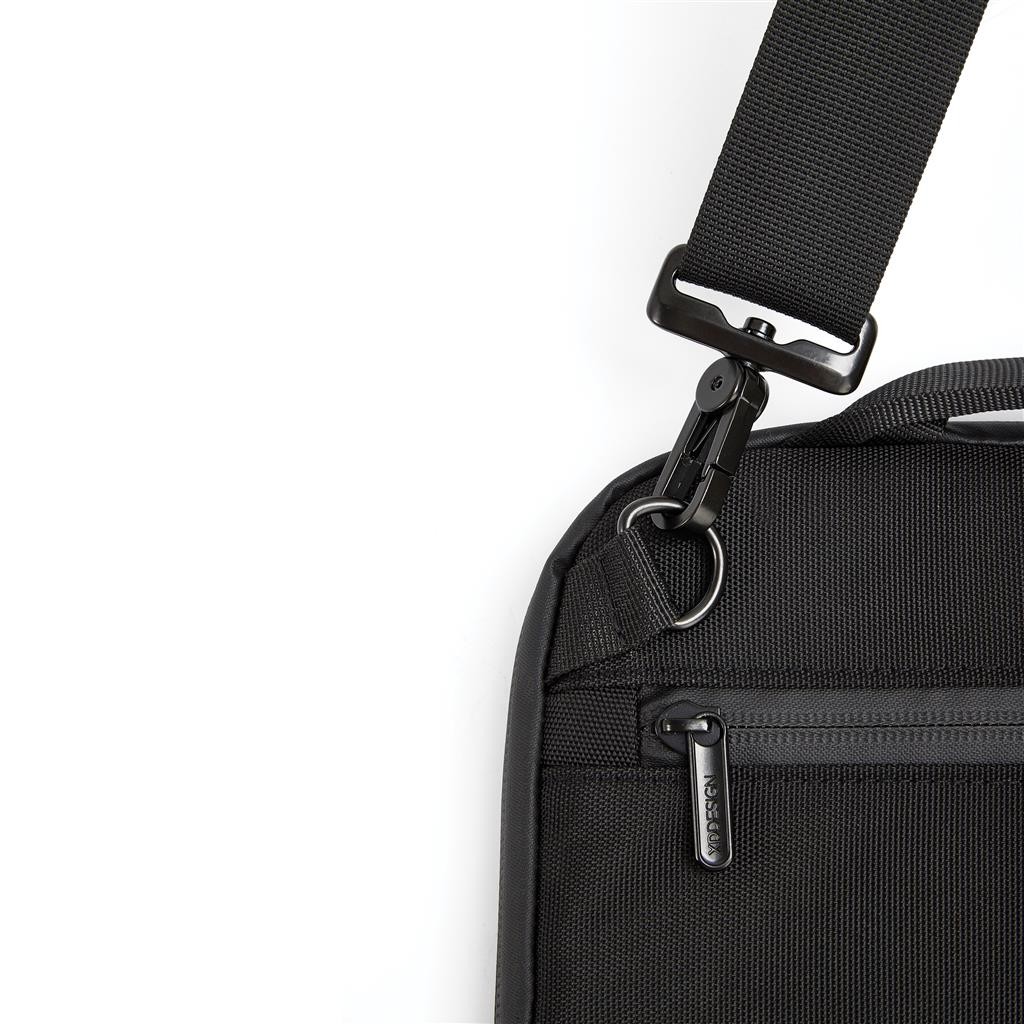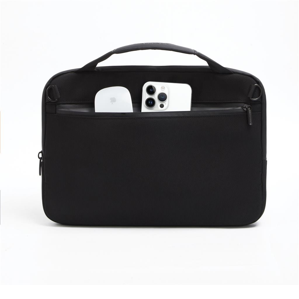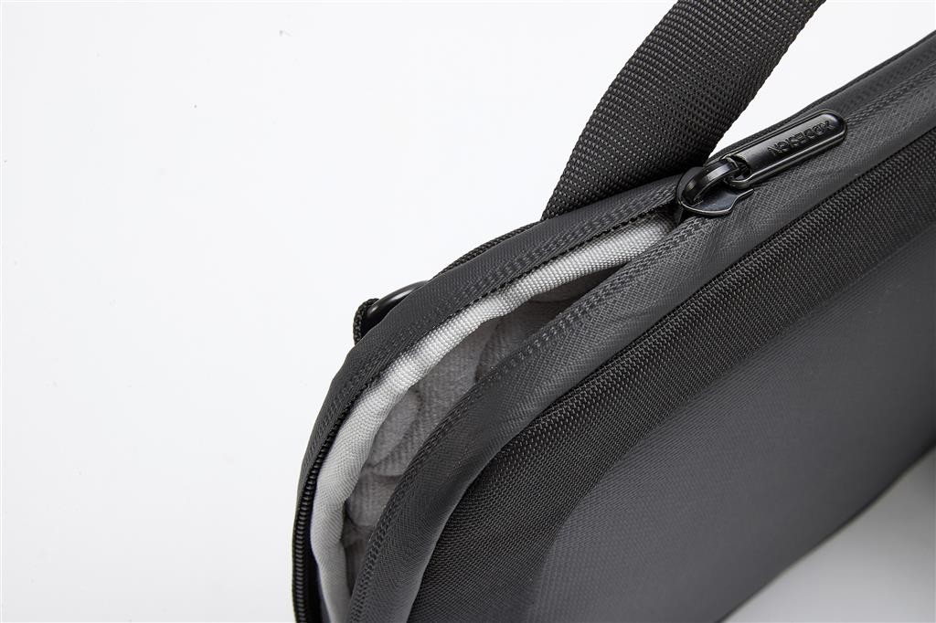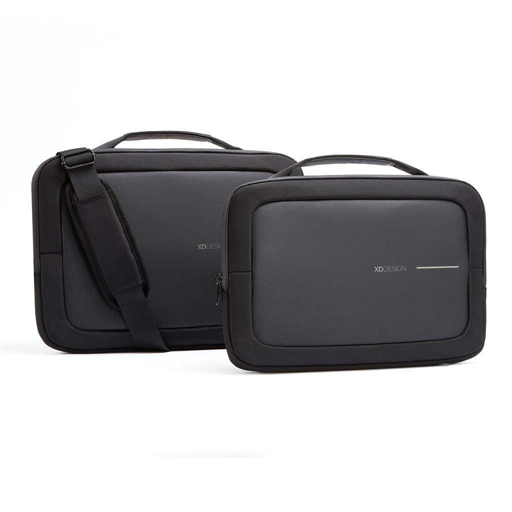 Taška od XD Design v klasické černé barvě nabízí spolehlivou ochranu pro až 16" notebook. Precizně vyrobená z recyklovaného polyesteru 1200D s repelentní úpravou, voděodolným zipem a šedou podšívkou. Odnímatelný ramenní popruh pro pohodlné nošení. Vnější menší kapsa na drobnosti. Vyrobeno z recyklovaného polyesteru včetně skenovatelné složky AWARE™ garantující obsah recyklátu.