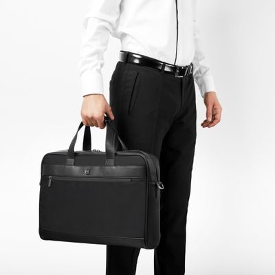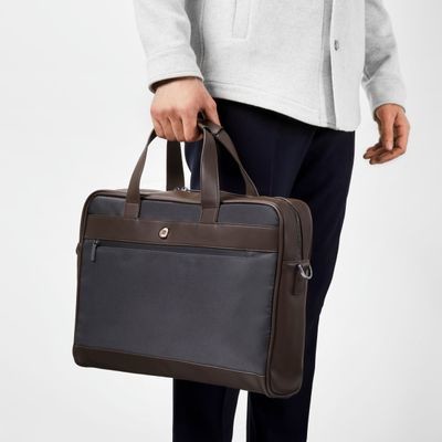 Minimální, elegantní a decentní cestovní kolekce Bond kombinuje současný nylon s luxusní texturou veganské kůže pro výsledek, který se snadno nosí a hodí ke každému outfitu. Tašky jsou podepsány matnou verzí naší CRR desky. Všechny detaily jsou pečlivě promyšlené: od zipů s vyrytým logem až po nadrozměrný, ale jemný podpis CERRUTI 1881 vyražený na boku tašky. Tato položka je také velmi funkční: potulná a snadno organizovatelná s množstvím přihrádek na zip. Vnitřek tašky je polstrovaný, aby co nejlépe chránil váš notebook. Je k dispozici ve 2 barevných verzích: Celočerná nebo smíšená hnědá a šedá pro rozhodně elegantní výsledek.
