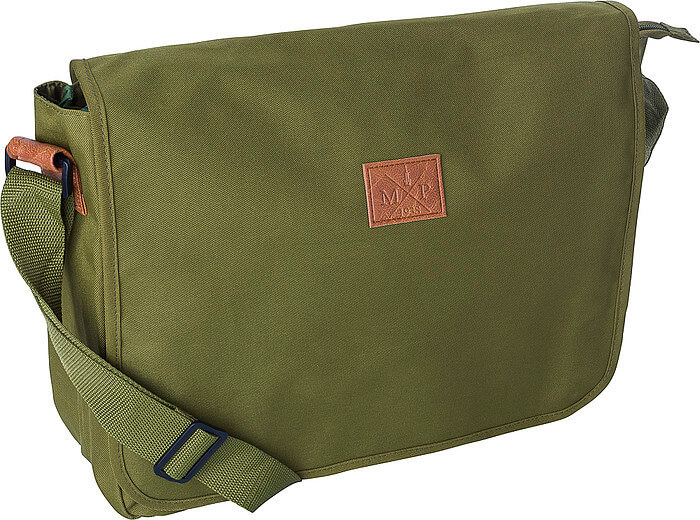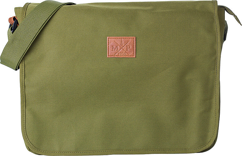 Polyesterová (600D) taška přes rameno se štítkem. Velký prostor má zapínání na zip. Hlavní oddíl je rozdělen na dvě části oddělovačem. Ramenní popruh je nastavitelný.