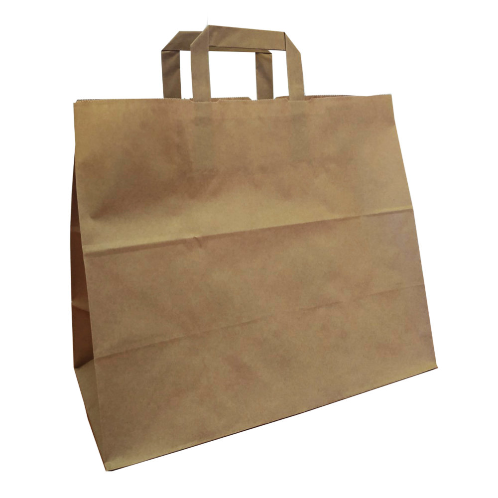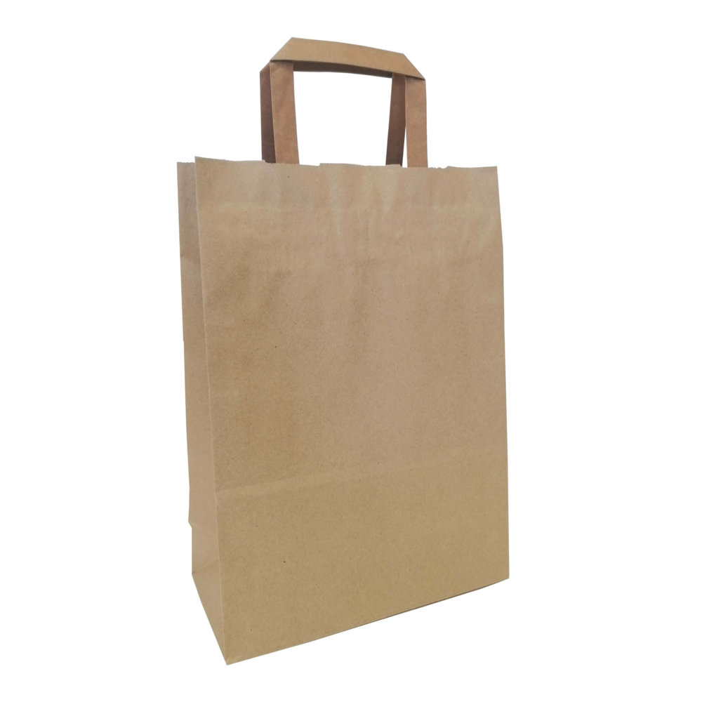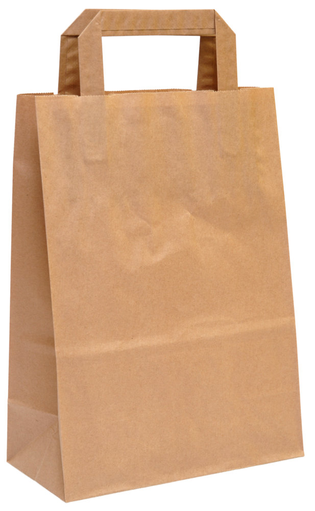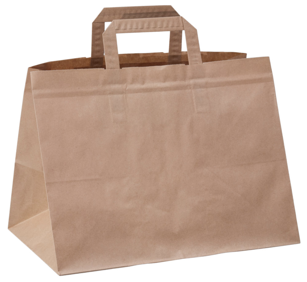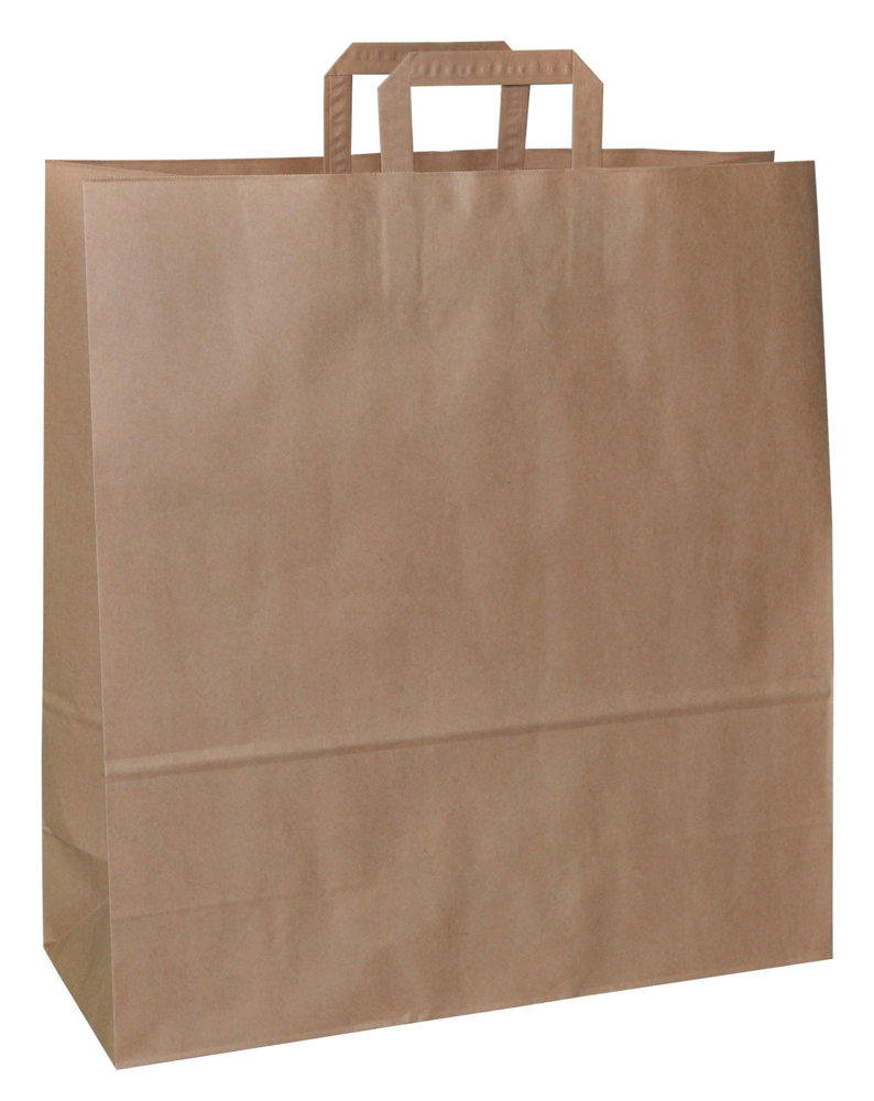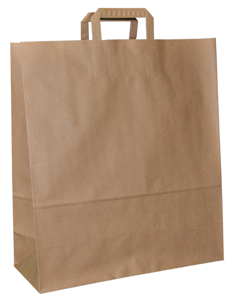 Papírové tašky s plochým papírovým uchem. Nejlevnější ekologický varianta papírové nákupní tašky. Vhodný do eko prodejen, kde je důležitý poměr nízká cena za tašku / kvalitní taška, která mě vysokou nosnost. Načastejšie se využívá k balení zboží v obchodech se zaměřením na ekologii případně pro levnější produkty, kde je nutnost levnější obalový materiál. Možnost potisku. Pro individuální cenu, kontaktujte naše obchodníky.