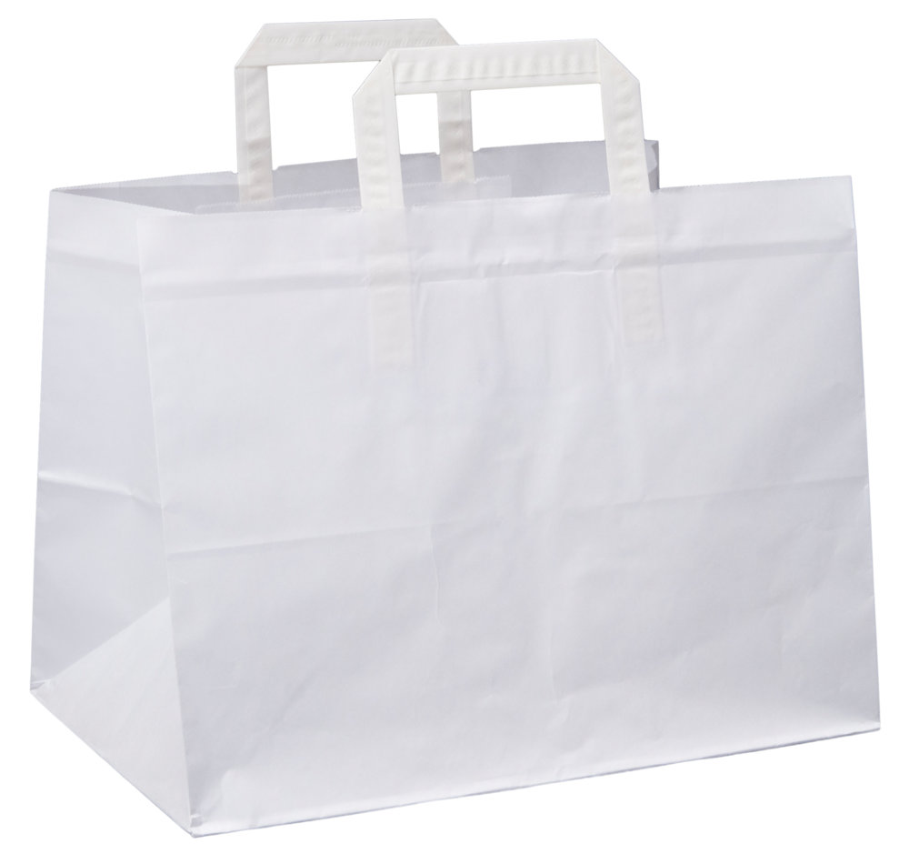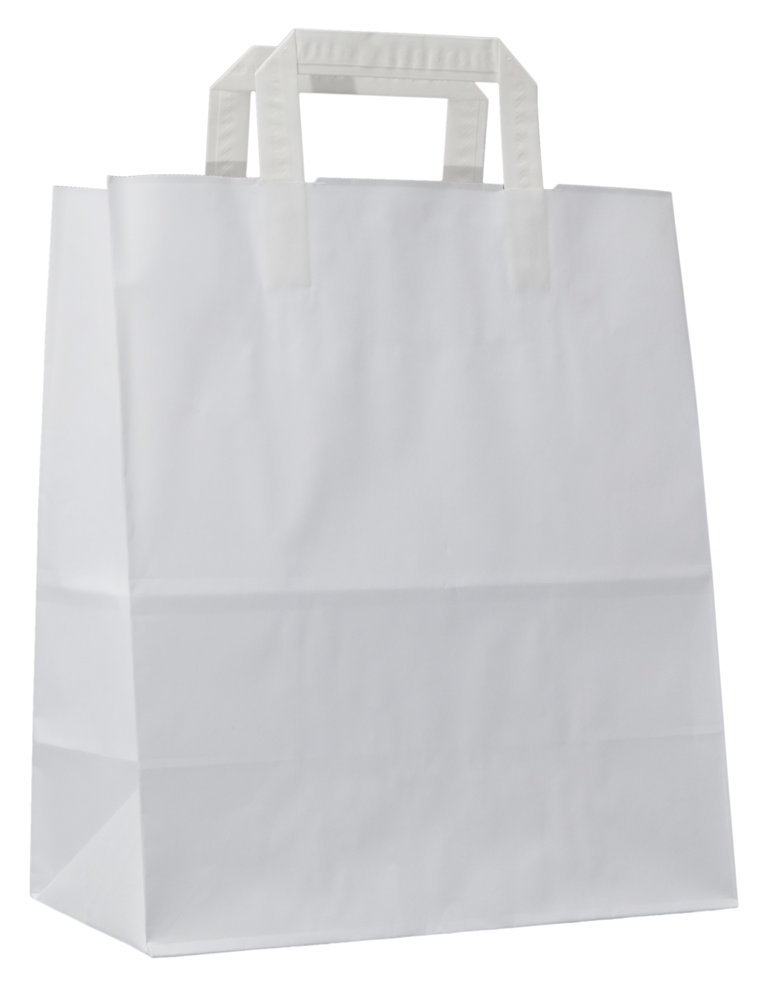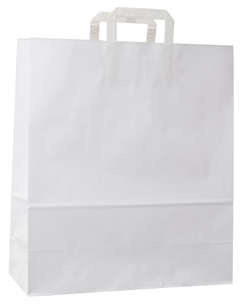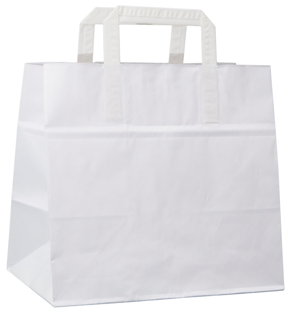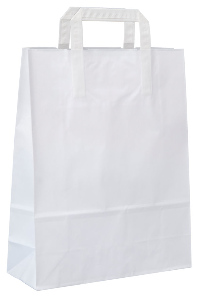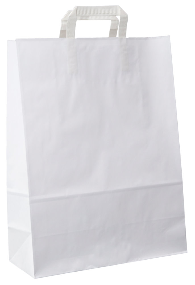 Papírové tašky s plochým papírovým uchem. Nejlevnější ekologický varianta papírové nákupní tašky. Vhodný do eko prodejen, kde je důležitý poměr nízká cena za tašku / kvalitní taška, která mě vysokou nosnost. Načastejšie se využívá k balení zboží v obchodech se zaměřením na ekologii případně pro levnější produkty, kde je nutnost levnější obalový materiál. Možnost potisku. Pro individuální cenu, kontaktujte naše obchodníky.