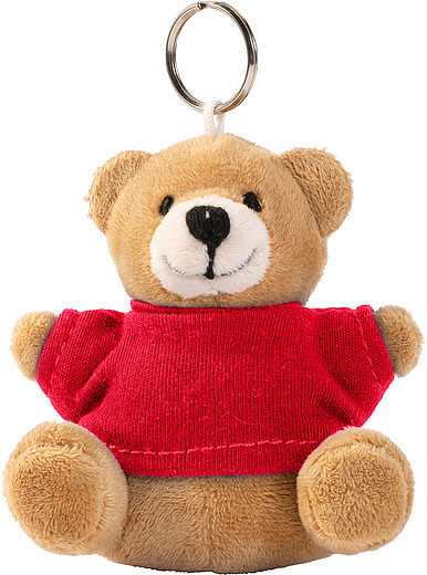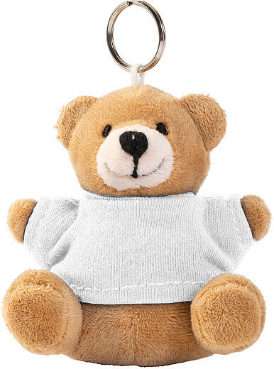 Klíčenka s plyšovým medvídkem který ma na sobě tričko, 100% bavlna.