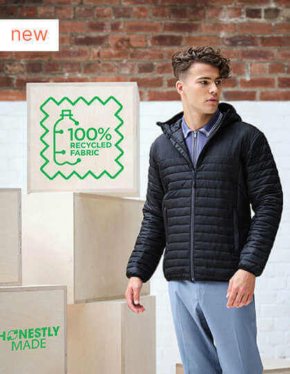 100 % recyklovaný polyester zajímavého vzhledu s vodoodpudivou „cire“ úpravou | 100 % podšívka z recyklovaného polyesteru | 100 % recyklovaná izolace Thermoguard | Strečová obruba na manžetách, kapuci a lemu | 2 spodní kapsy na zip | Snadno stlačitelný