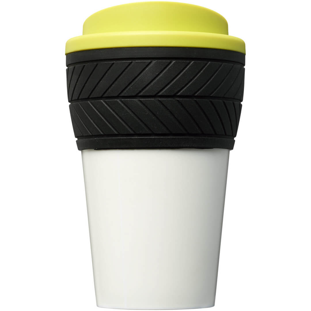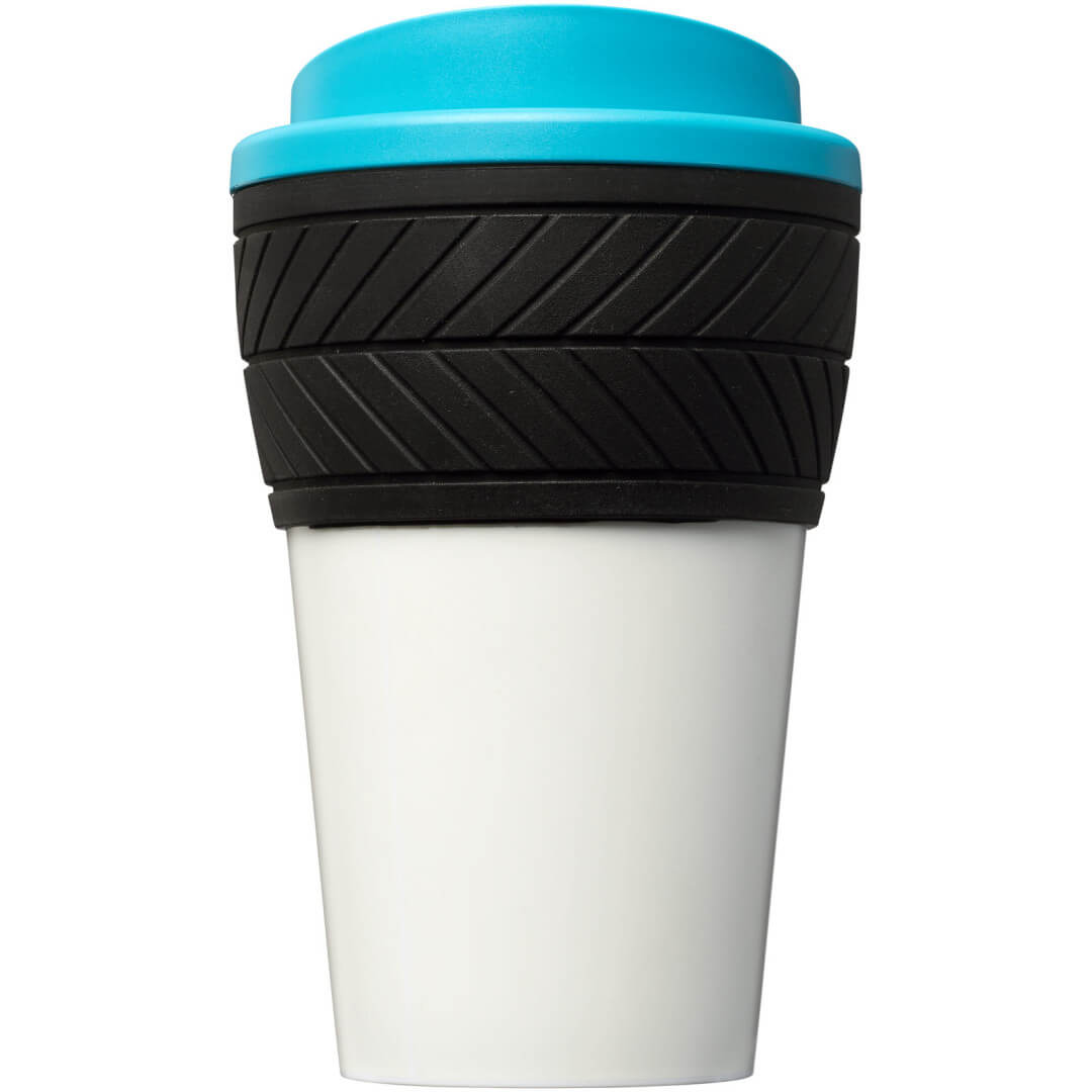 Termo hrnek s nasazovacím víkem proti rozlití s dvojitou stěnou a silikonovou rukojetí ve tvaru pneumatiky. Hrnek se vyznačuje plněbarevným designem přizpůsobeným výrobku, který jej činí odolný s dlouhou životností. EN12875-1 kompatibilní; vhodný do myčky na nádobí a mikrovlnné trouby. Objem je 350 ml. Míchejte a spojujte barvy a vytvořte si tak svůj ideální hrnek. Pro další možnosti barev se obraťte na zákaznický servis. Vyrobeno v Spojeném království. 15% Silikonový plast, 85% PP plast.