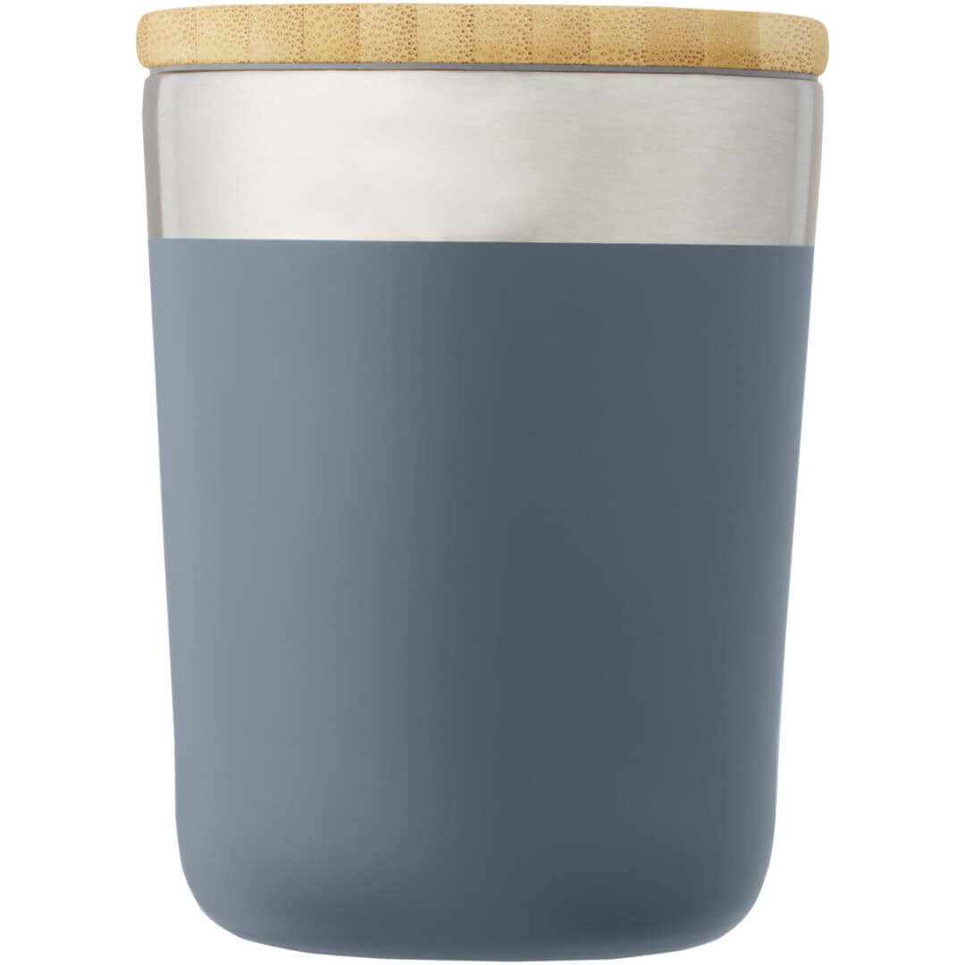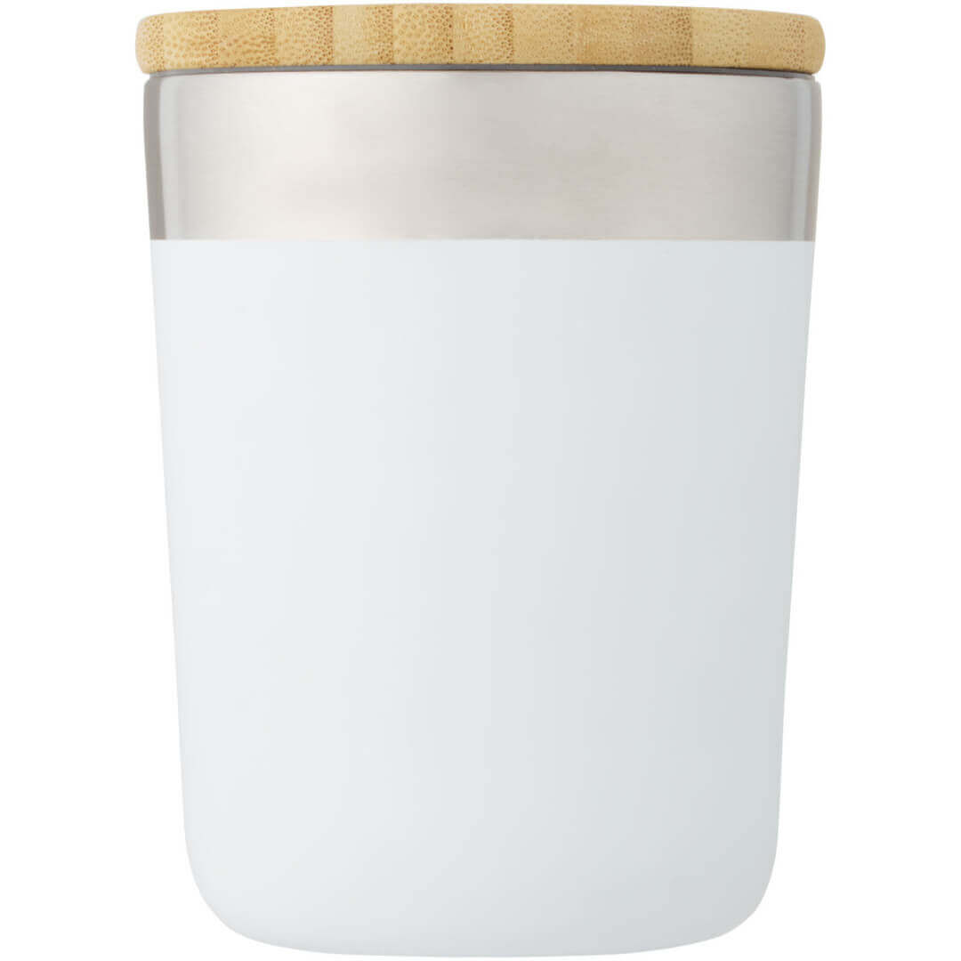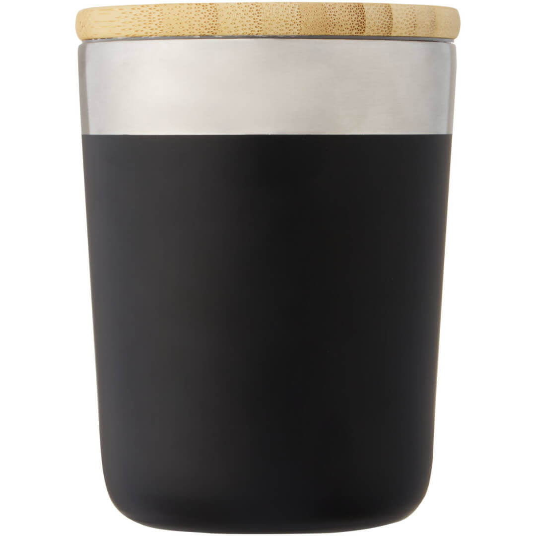 Dvouplášťový kelímek s měděnou vakuovou izolací, moderním designem a víčkem z organického bambusu. Izolační nerezová ocel 18/8 udrží nápoje horké nebo studené po dobu několika hodin. Bez BPA, testováno a schváleno podle německé legislativy pro bezpečnost potravin (LFGB), testováno na obsah ftalátů podle předpisů REACH. Vhodný pro většinu kávovarů, skvelý doplněk pro práci na cestách. Objem je 300 ml. Dodává se v dárkové krabičce z recyklované lepenky. Nedoporučuje se mýt v myčce.
