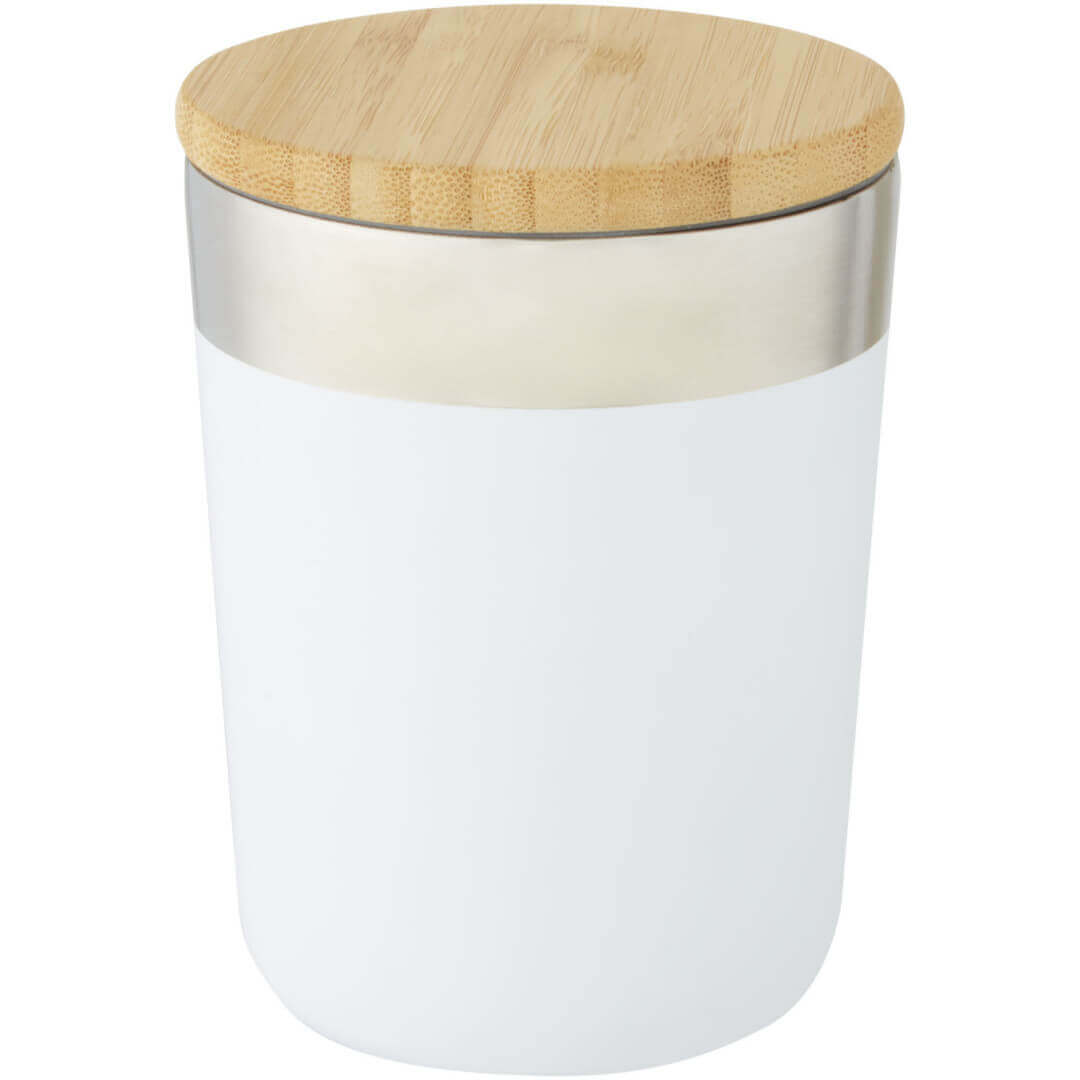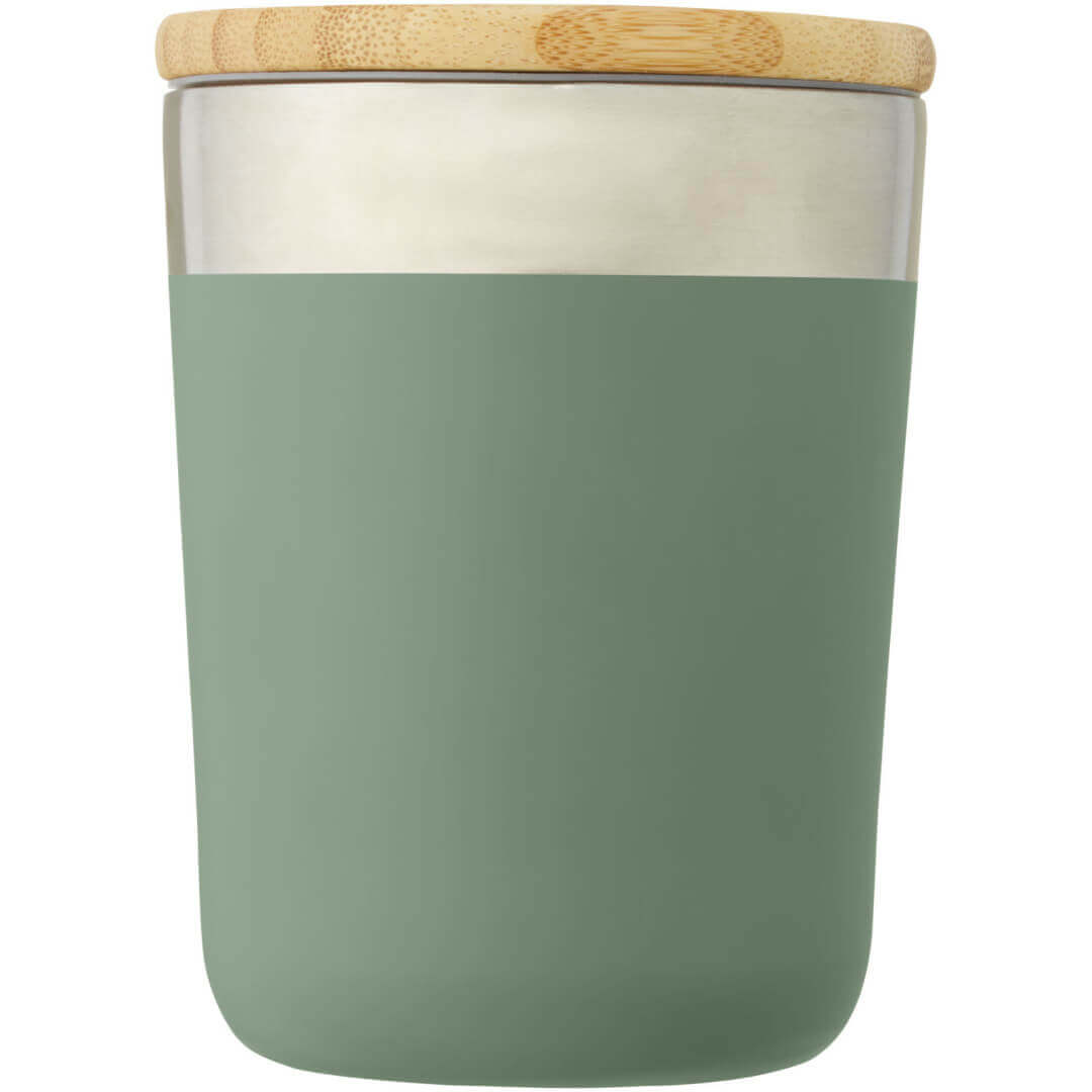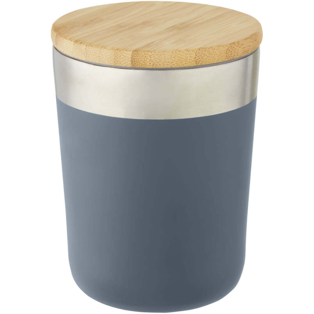 Dvouplášťový kelímek s měděnou vakuovou izolací, moderním designem a víčkem z organického bambusu. Izolační nerezová ocel 18/8 udrží nápoje horké nebo studené po dobu několika hodin. Bez BPA, testováno a schváleno podle německé legislativy pro bezpečnost potravin (LFGB), testováno na obsah ftalátů podle předpisů REACH. Vhodný pro většinu kávovarů, skvelý doplněk pro práci na cestách. Objem je 300 ml. Dodává se v dárkové krabičce z recyklované lepenky. Nedoporučuje se mýt v myčce.