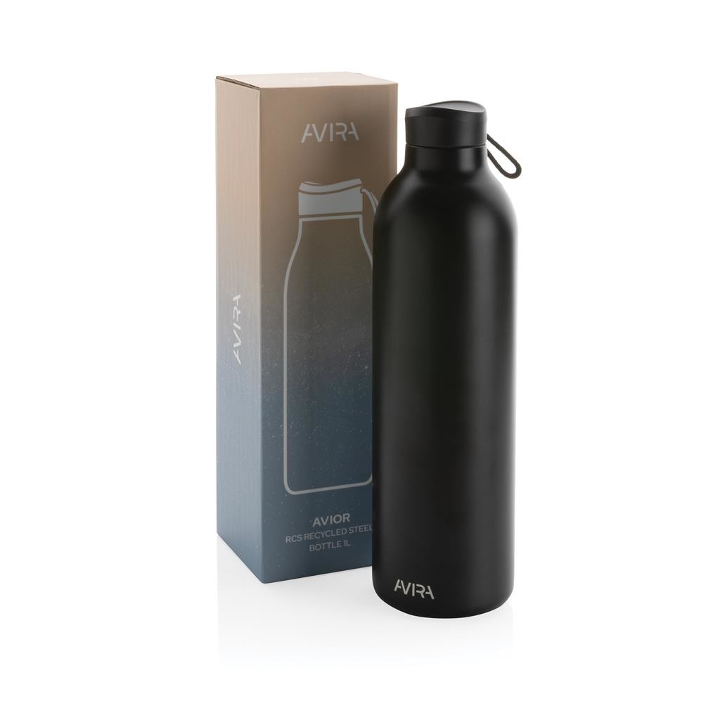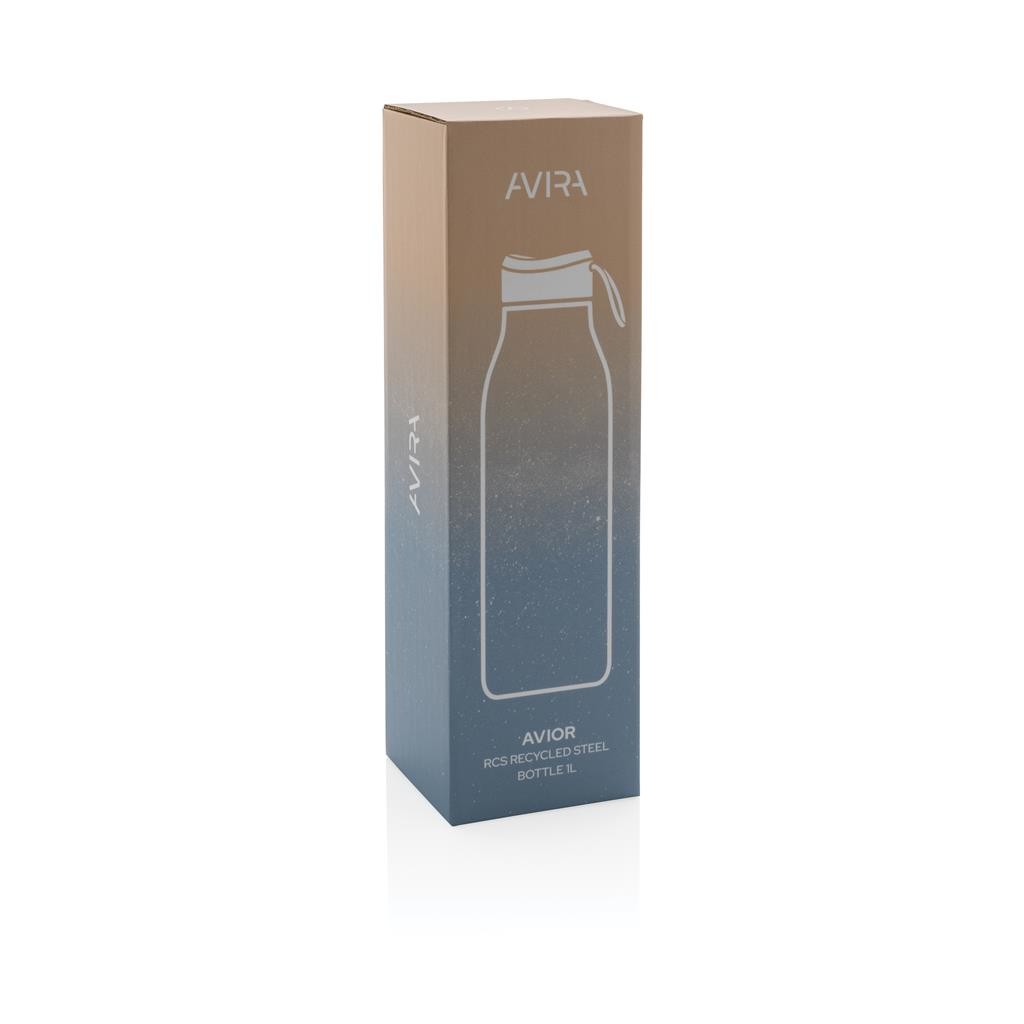 Termo lahev Avira Avior je navržená pro dlouhotrvající každodenní používání. Dvojitá stěna z nerezavějící oceli uchová nápoje až 10 hodin horké a až 20 hodin studené. Ideální velikost pasuje do většiny držáků nápojů v automobilech. Vyrobeno z RCS recyklovaných materiálů. RCS (Recycled Claim Standard) je globální standard, který umožňuje ověřit použití recyklovaného materiálu v produktu napříč celým dodavatelským řetězcem. Celkový podíl recyklátu dle váhy produktu: 97 %. Objem: 1 000 ml. Bez BPA. Baleno v FSC® kraftové dárkové krabičce, kterou lze po vybalení složit a využít jako držák na telefon nebo pera nebo jako květináč.