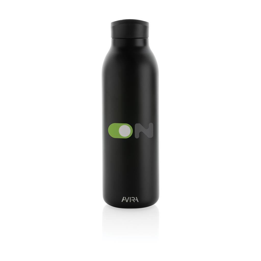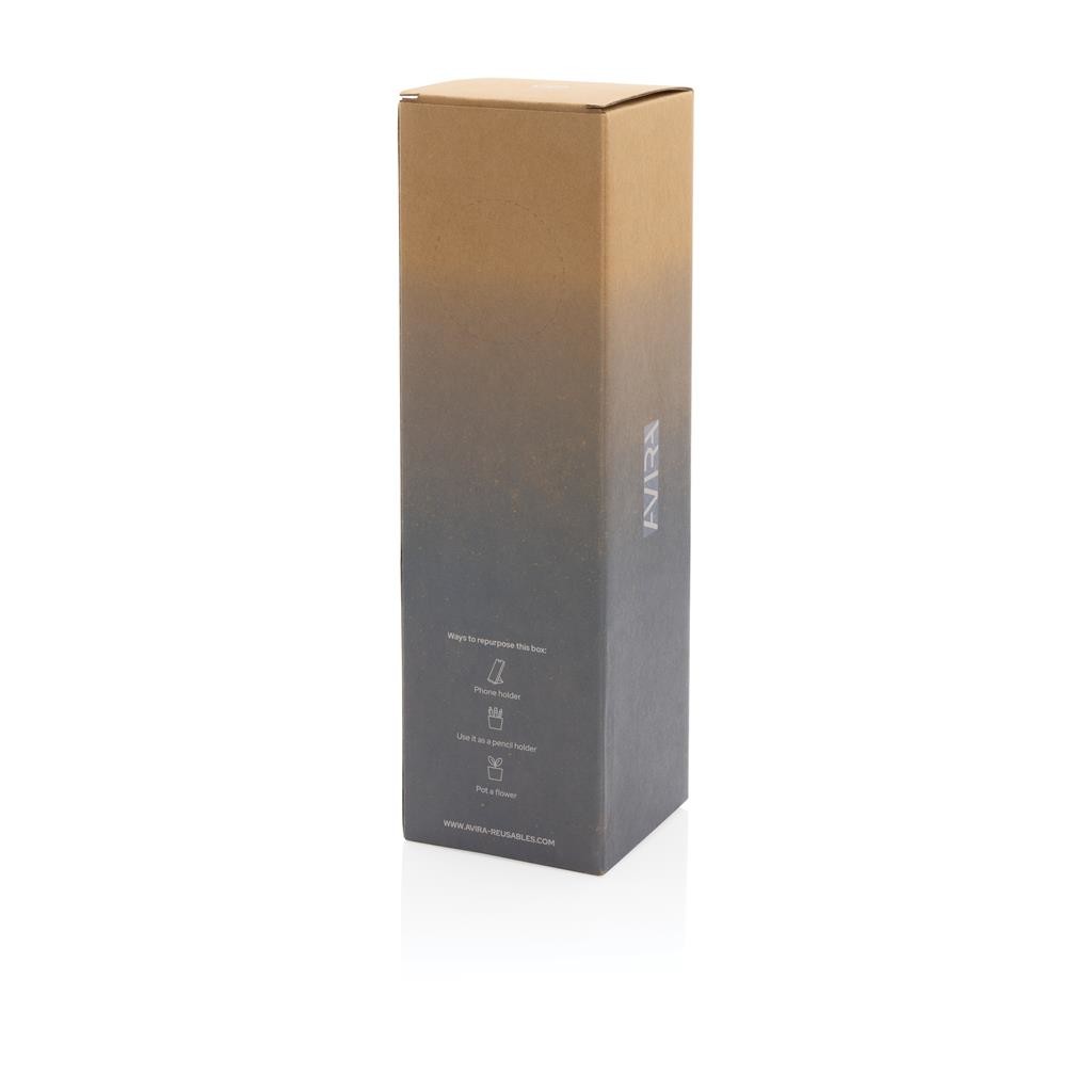 Termo lahev Avira Avior je navržená pro dlouhotrvající každodenní používání. Dvojitá stěna z nerezavějící oceli uchová nápoje až 10 hodin horké a až 20 hodin studené. Ideální velikost pasuje do většiny držáků nápojů v automobilech. Vyrobeno z RCS recyklovaných materiálů. RCS (Recycled Claim Standard) je globální standard, který umožňuje ověřit použití recyklovaného materiálu v produktu napříč celým dodavatelským řetězcem. Celkový podíl recyklátu dle váhy produktu: 97 %. Objem: 500 ml. Bez BPA. Baleno v FSC® kraftové dárkové krabičce, kterou lze po vybalení složit a využít jako držák na telefon nebo pera nebo jako květináč.