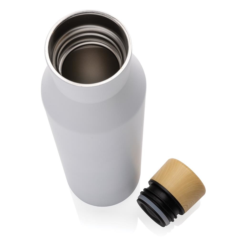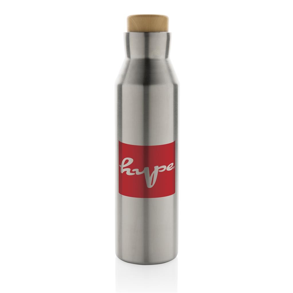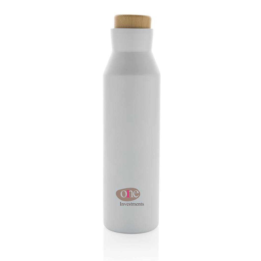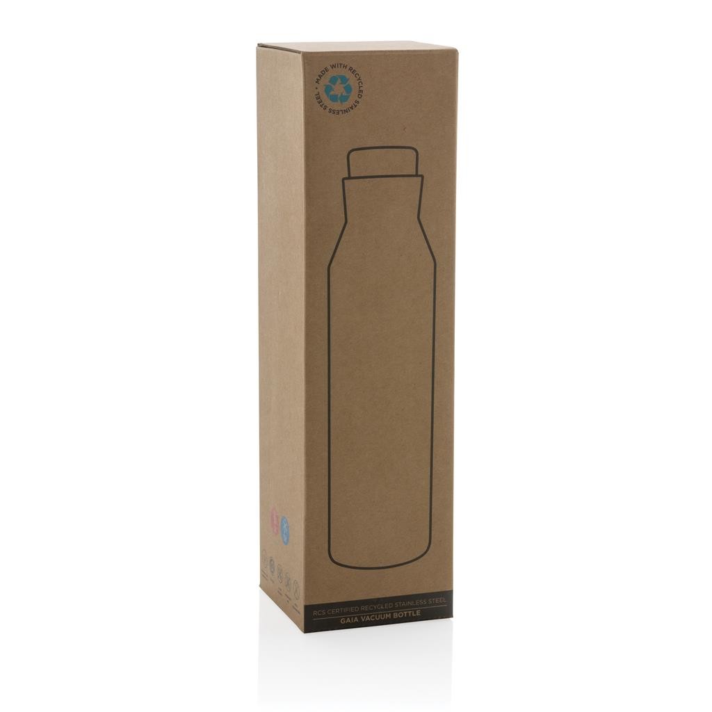 Nepropustná termo lahev gaia. Vyrobená z RCS recyklované nerezavějící oceli. RCS (Recycled Claim Standard) je globální standard, který umožňuje ověřit použití recyklovaného materiálu v produktu napříč celým dodavatelským řetězcem.